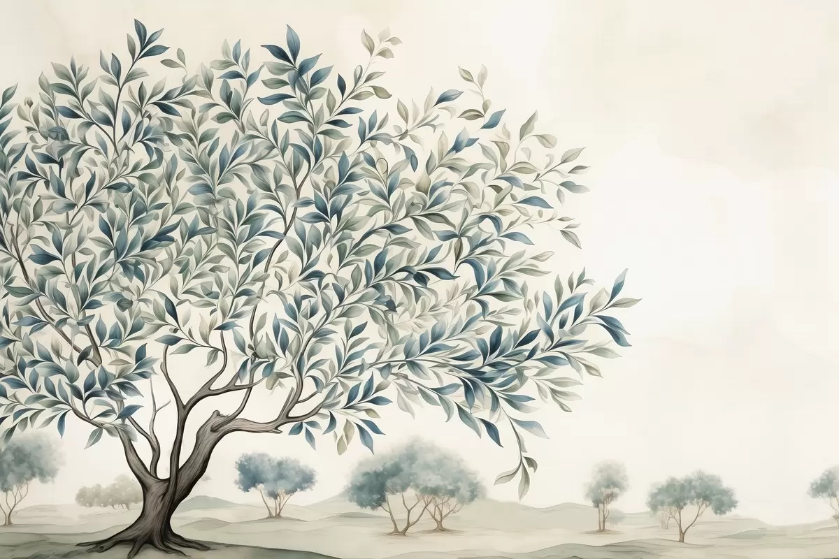 Schilderij Boom in een veld, aquarelschilderij Art. s47705