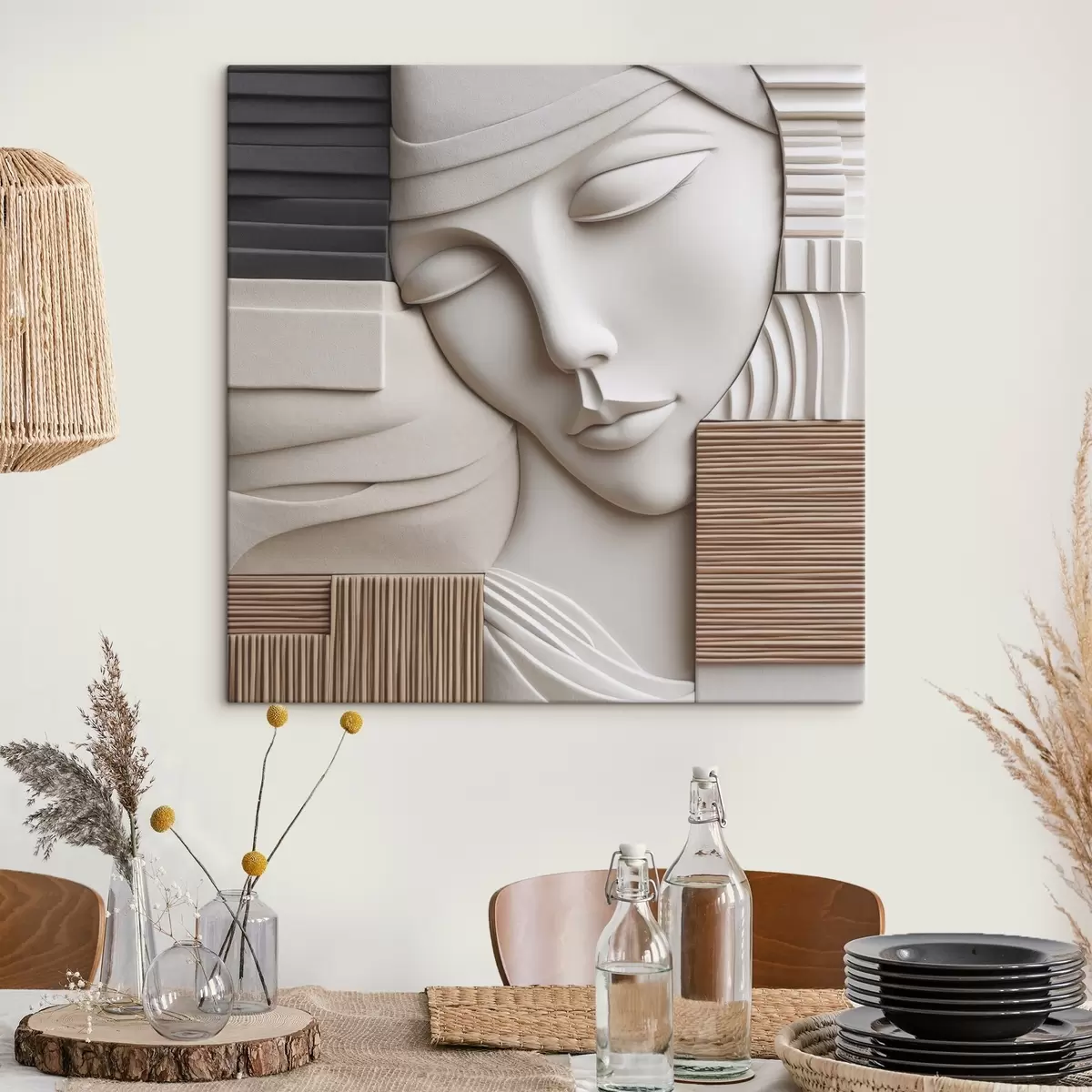 Er zijn drie soorten materiaal te bestellen: Economic Canvas - een dicht en duurzaam materiaal voor digitaal printen, identiek aan schildersdoek, waterdicht oppervlak, realistische weergave van details, materiaal met gemiddelde korrel. Premium Canvas - de textuur lijkt op die van schildersdoek (verweven kleine draden). Zachte, gedetailleerde reproductie van de afbeelding op een mat oppervlak. Eco-Premium - hoogwaardige 100% katoenen stof. Dankzij de natuurlijke katoenvezels is het materiaal duurzaam en slijtvast. Uitstekende kleurweergave en detail.