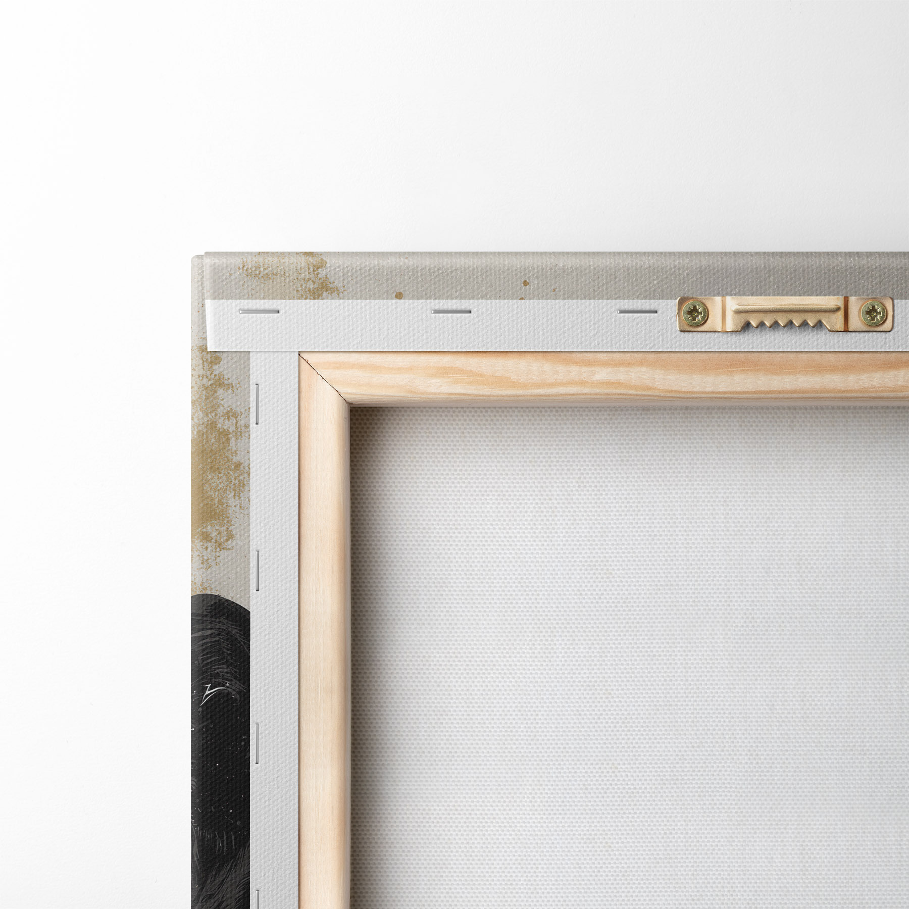 Om het doek op te spannen op spielatten zonder de afbeelding te beschadigen, gebruiken we gespiegeld beeld.