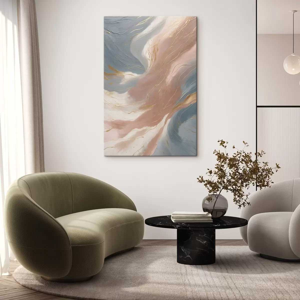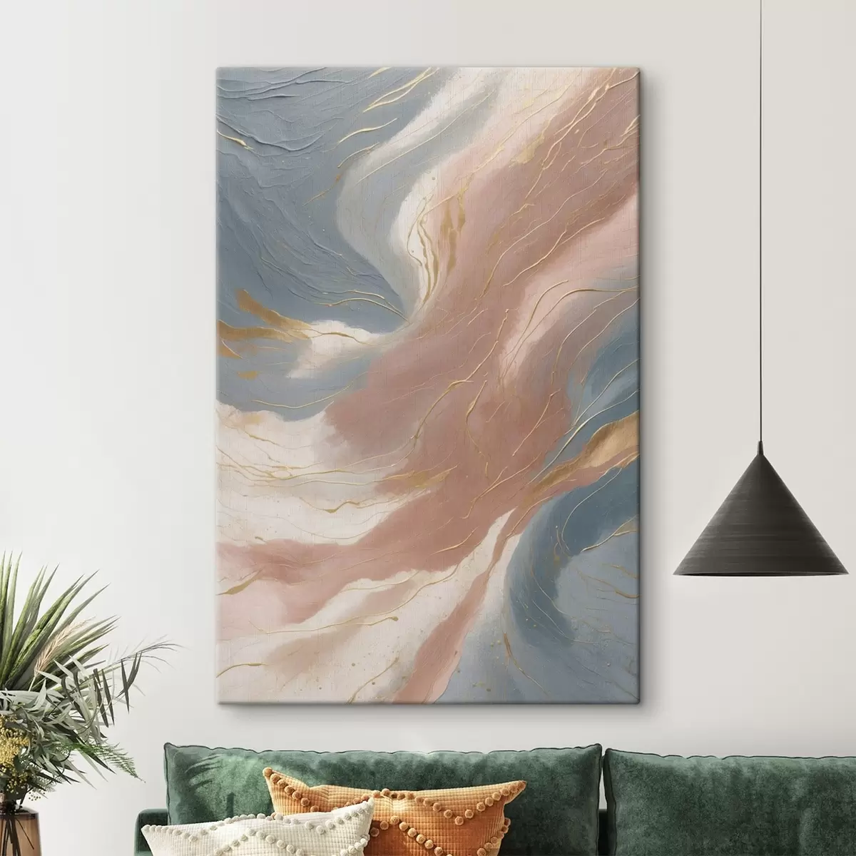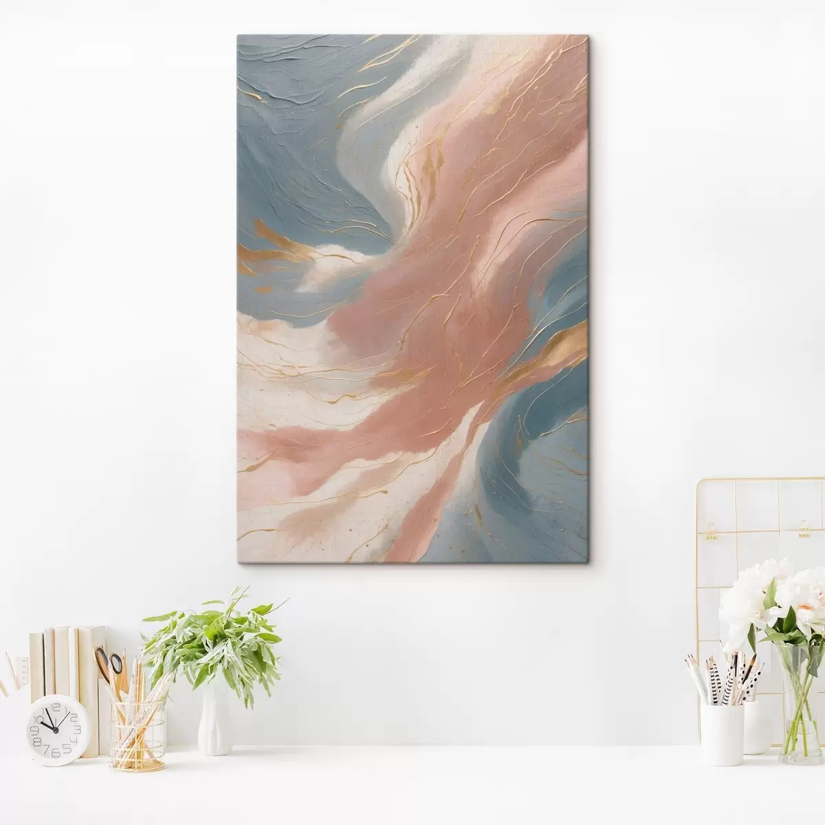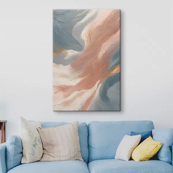 Schilderij Abstracte golven in zachte blauwe en roze tinten Art. s47753