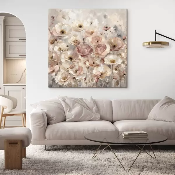 Schilderijen Veld met lichte bloemen in zachte tinten s47757