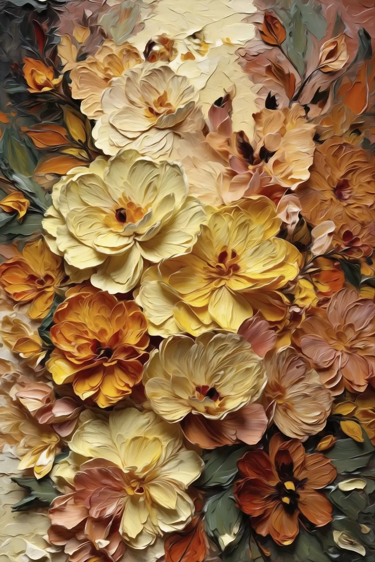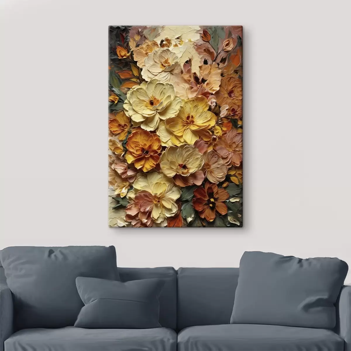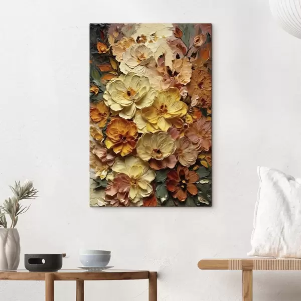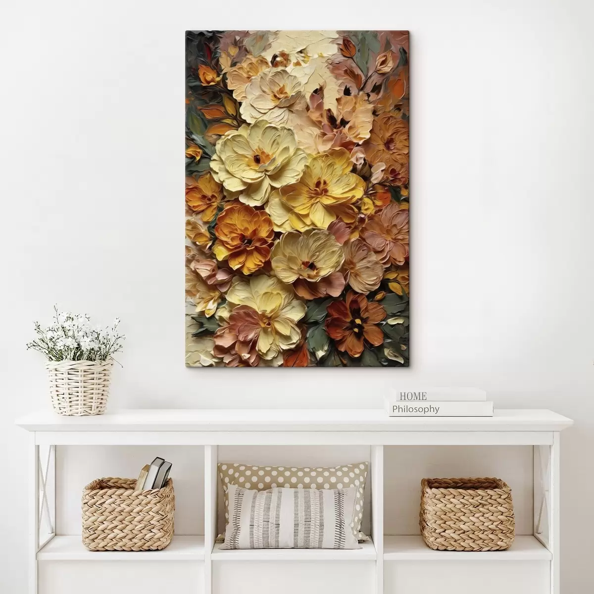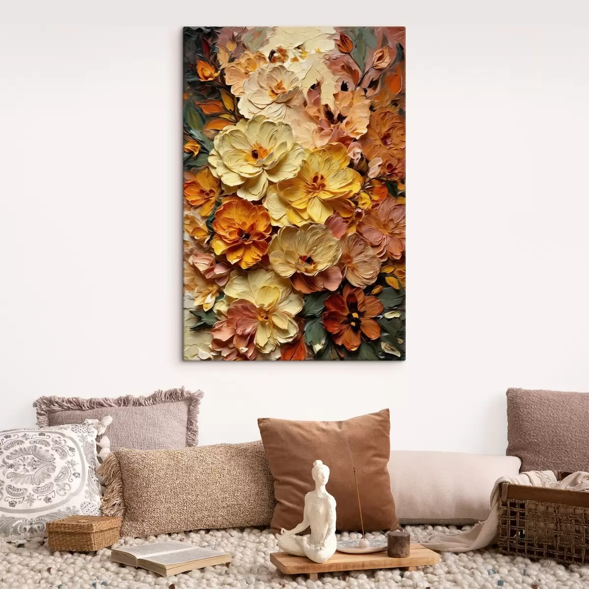 Schilderij Weelderige compositie van levendige bloemen in warme tinten Art. s47760