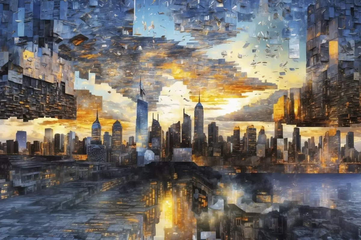 Schilderij Fantastisch stadsgezicht met een gefragmenteerde lucht Art. s47768