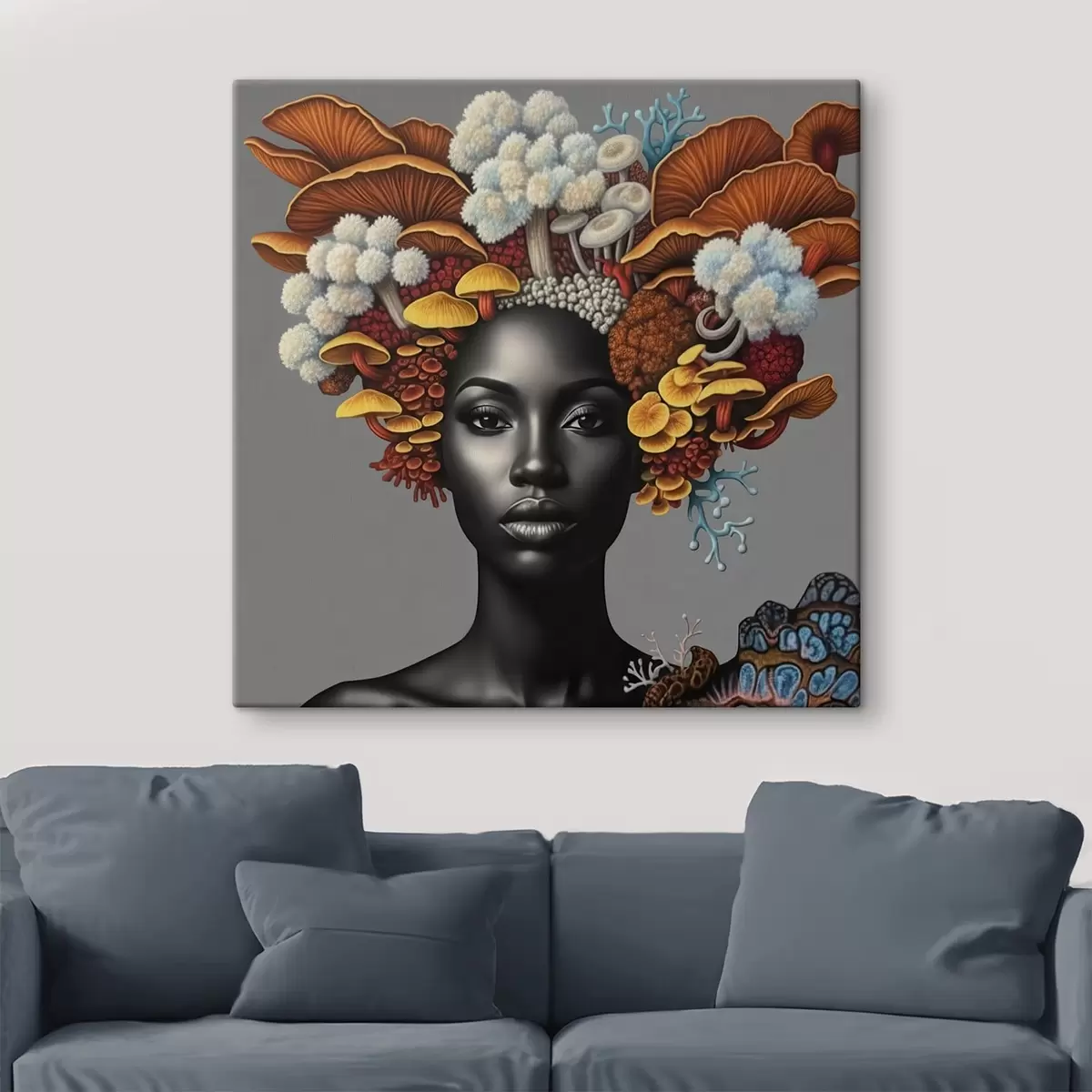 Schilderij Portret van een vrouw met paddenstoelen Art. s47788