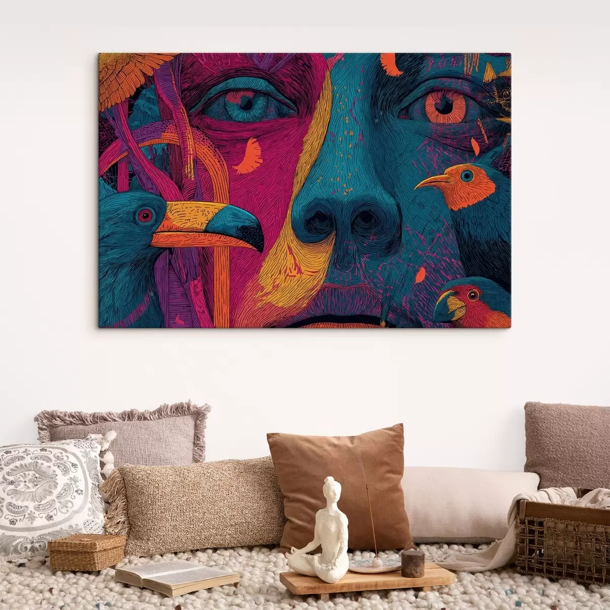 Schilderij Psychedelisch portret met vogels Art. s47789