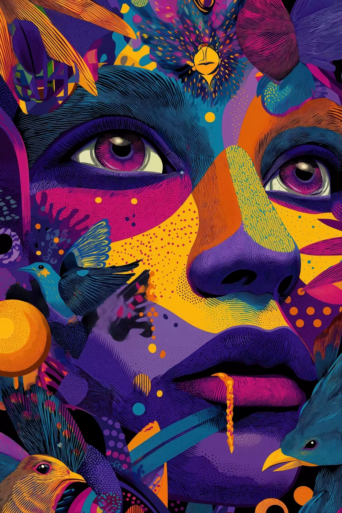 Schilderij Psychedelisch portret met vogels Art. s47790
