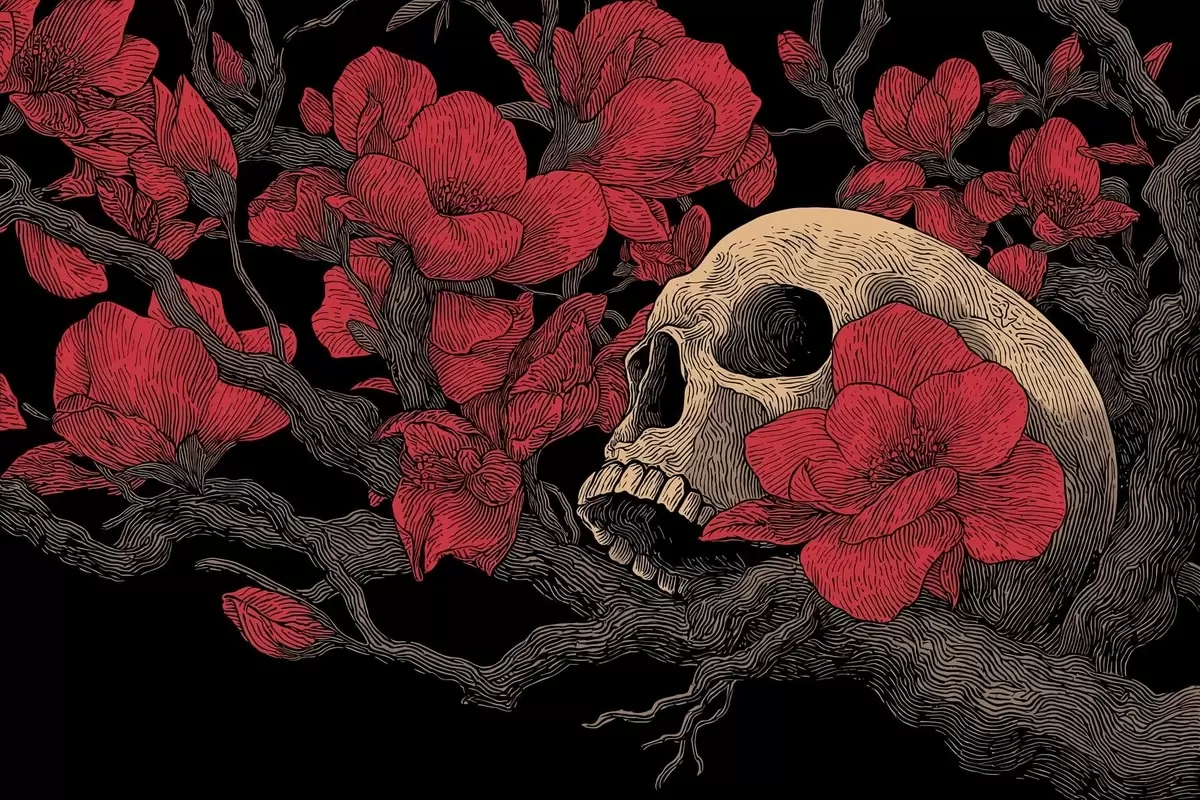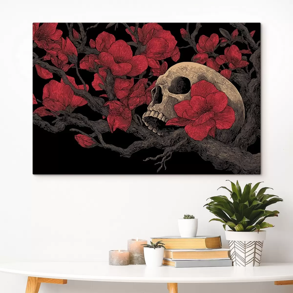 Schilderijen Schedel met bloemen s47797
