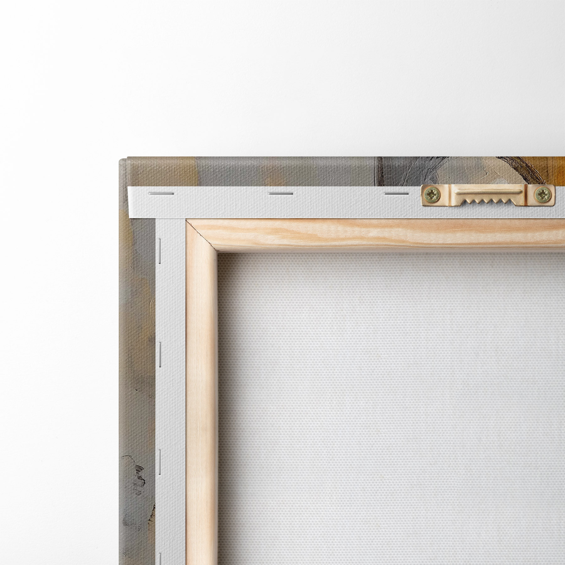 Het schilderij kan direct na ontvangst worden opgehangen. Het schilderij wordt opgespannen op een 2 cm breed houten spieraam.
