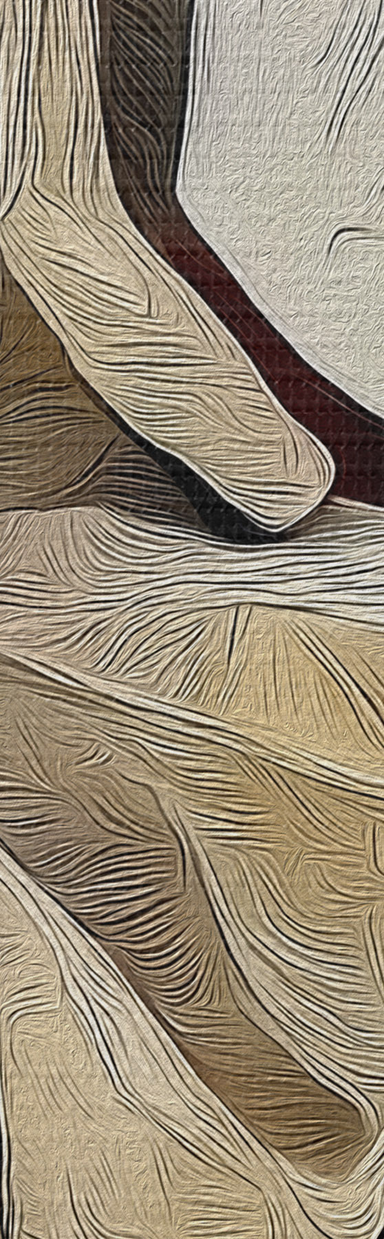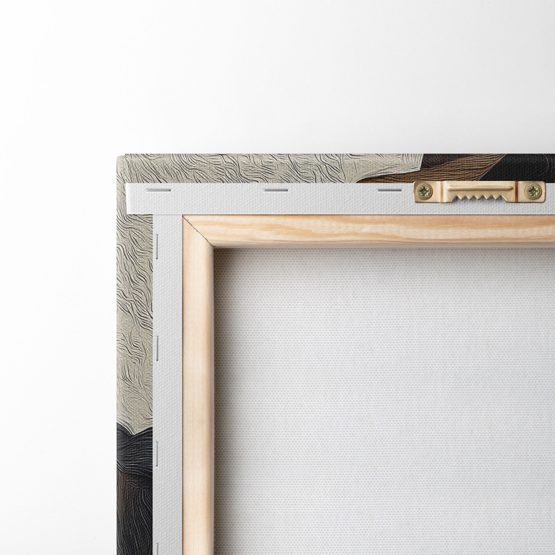 Om het doek op te spannen op spielatten zonder de afbeelding te beschadigen, gebruiken we gespiegeld beeld.