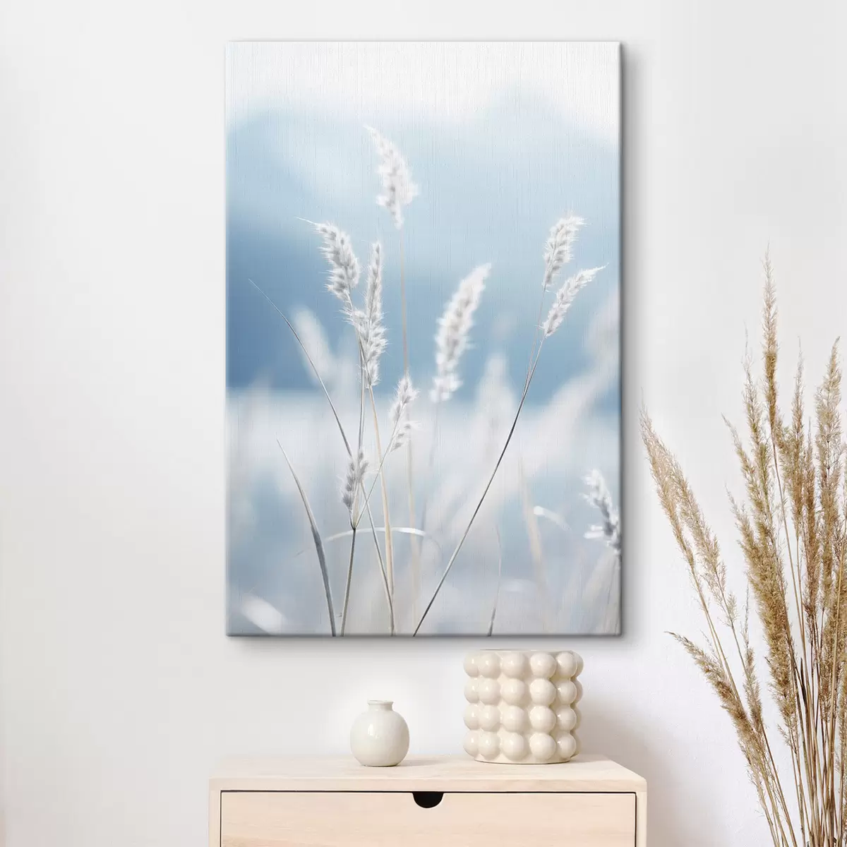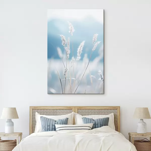 Schilderij Wit pluizig gras tegen een zachtblauwe lucht, met een geringe scherptediepte Art. s47880