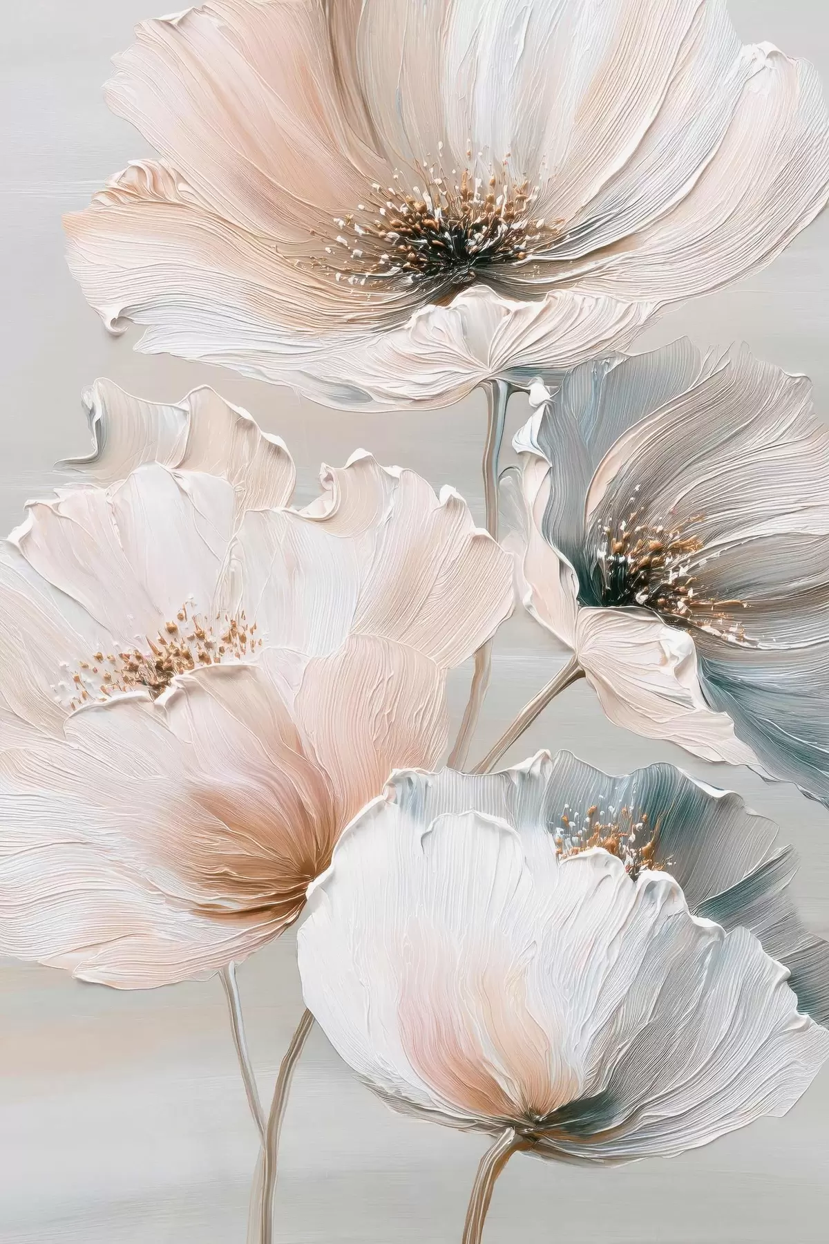 Schilderij Bloemcompositie met gestructureerde penseelstreken in een beige-roze kleurenpalet Art. s47961