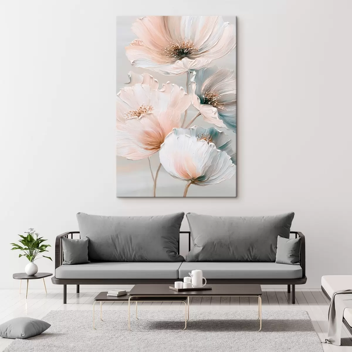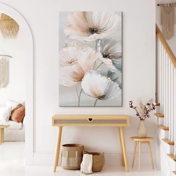 Schilderijen Bloemcompositie met gestructureerde penseelstreken in een beige-roze kleurenpalet s47961