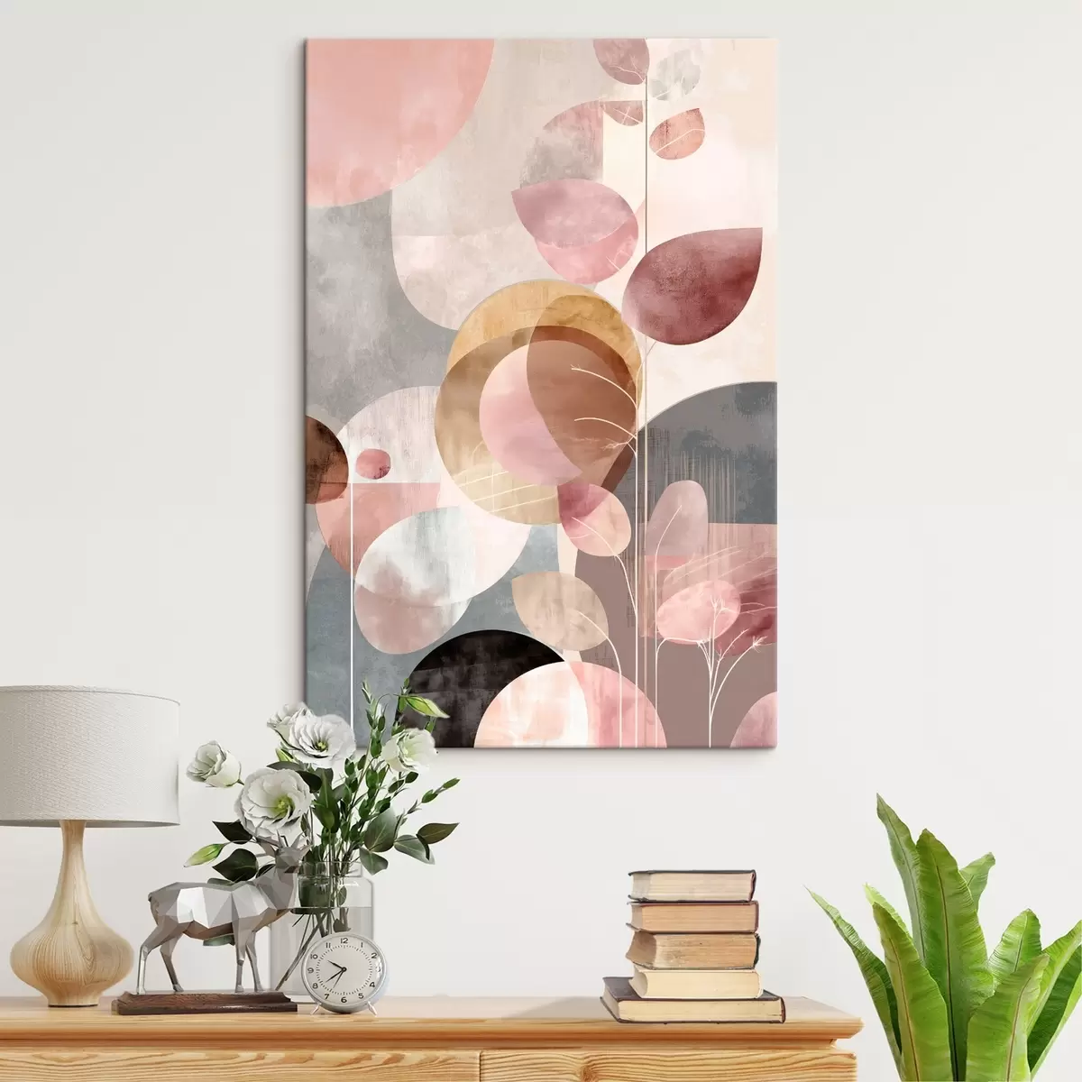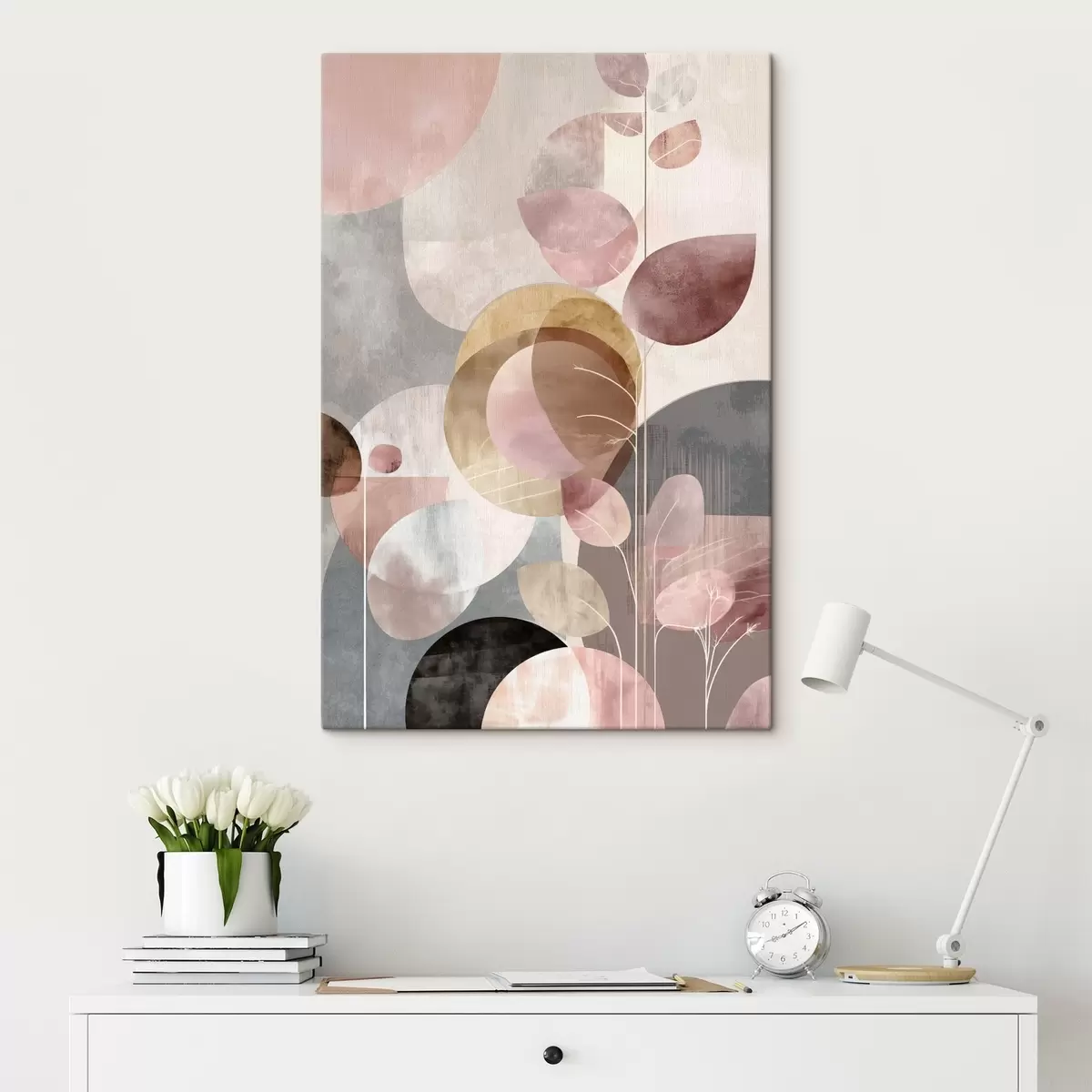 Schilderijen Bloemenkunst in beige-roze tinten in minimalistische stijl s47976