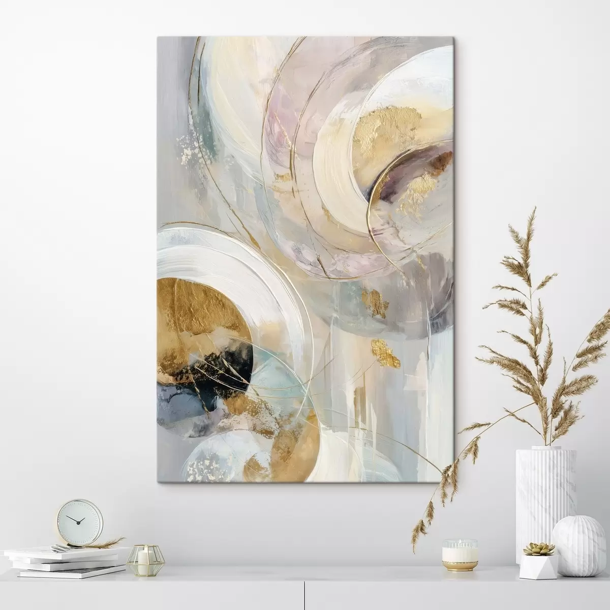 Schilderij Compositie met gelaagde cirkelvormige elementen en verfstreken Art. s47983