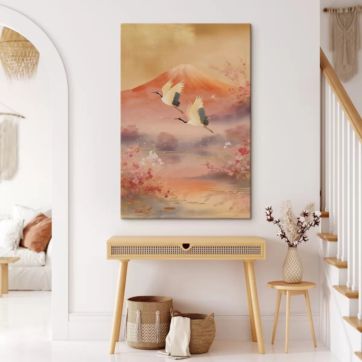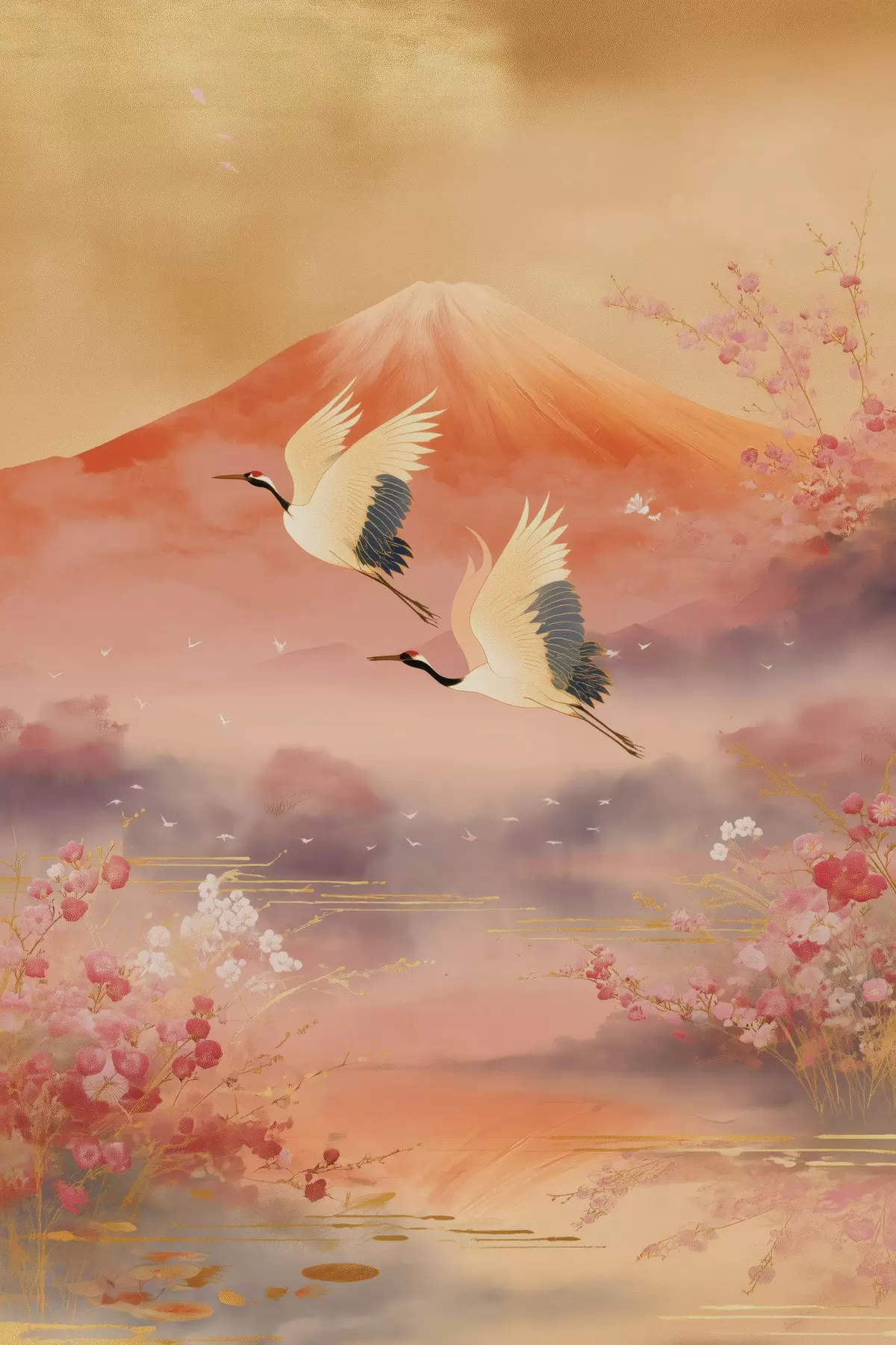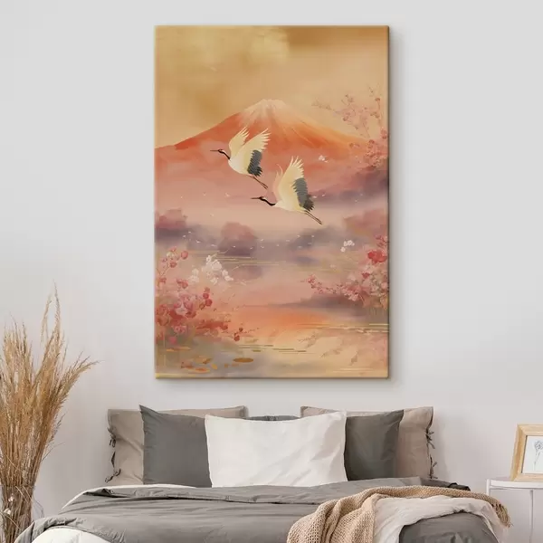 Schilderij Traditioneel oosters motief met kersenbloesems en kraanvogels Art. s47991