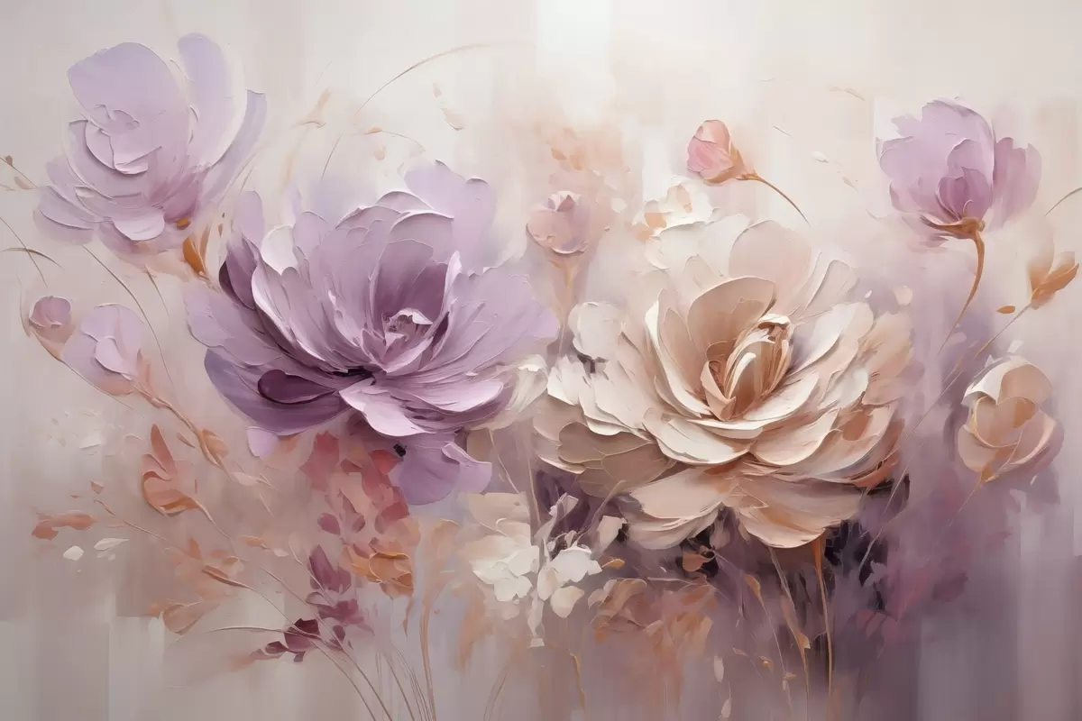 Schilderij Delicate grote bloemen, imitatie van een olieverfschilderij Art. s48002