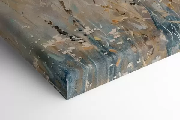 Het schilderij kan direct na ontvangst worden opgehangen. Het schilderij wordt opgespannen op een 2 cm breed houten spieraam.