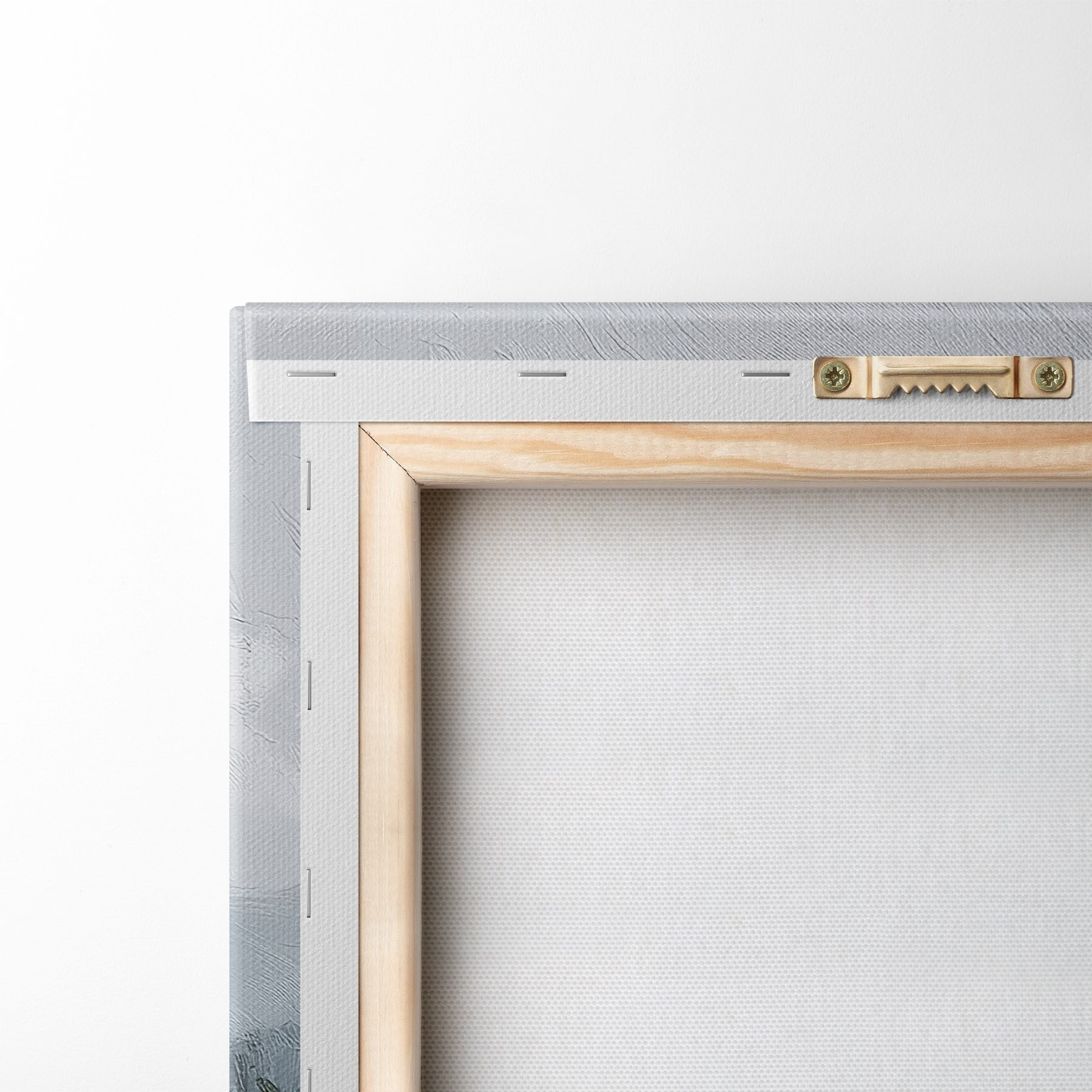 Je kunt het schilderij ophangen aan schroeven. Hiervoor leveren we bevestigingen bij onze foto's, zodat je de foto gemakkelijk kunt ophangen.