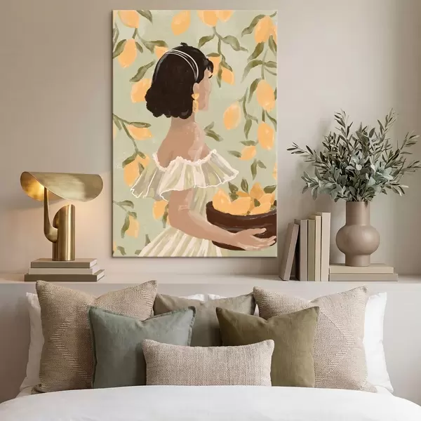 Schilderij Vrouw met een schaal citroenen bij de takken Art. s48023