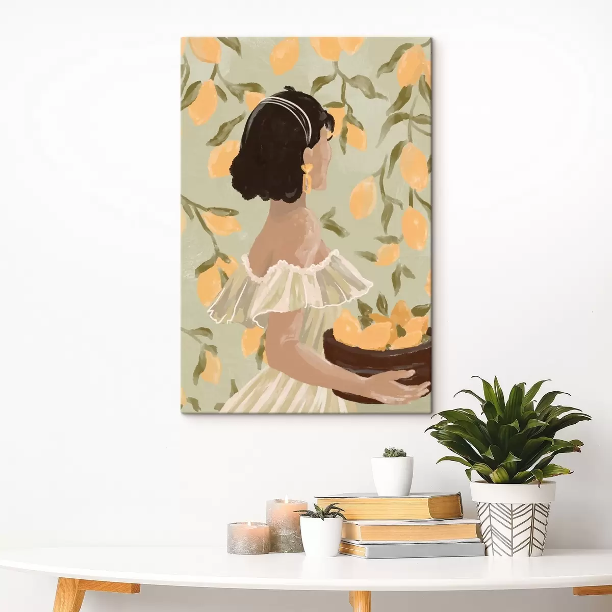 Schilderijen Vrouw met een schaal citroenen bij de takken s48023