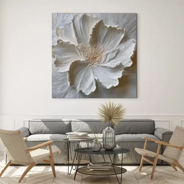 Schilderij witte gipsen reliëf bloemensculptuur Art. s48064