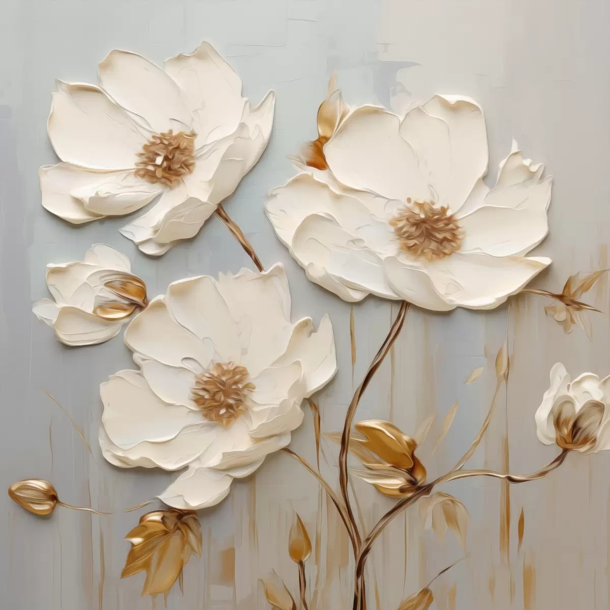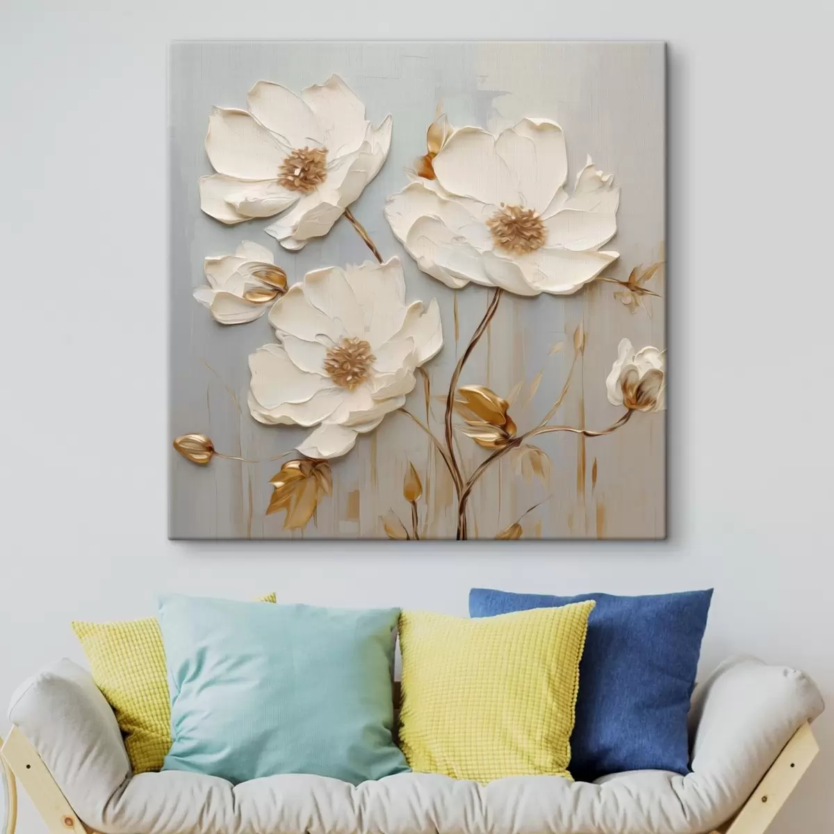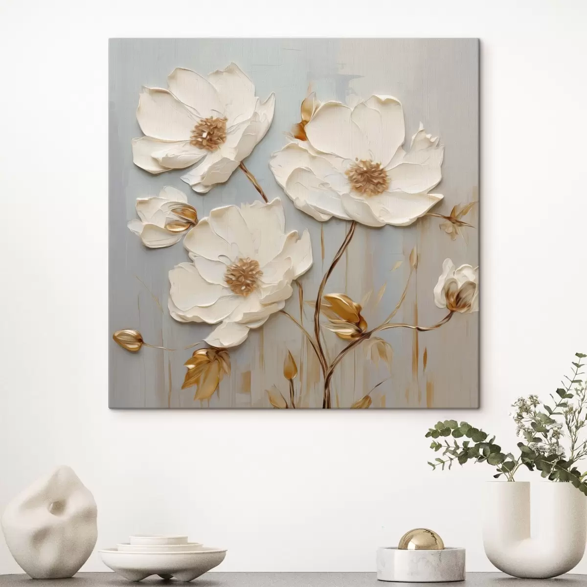 Schilderij Relief witte bloemen met warme bladeren Art. s48093