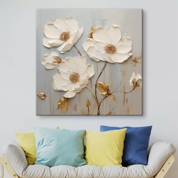 Schilderijen Relief witte bloemen met warme bladeren s48093