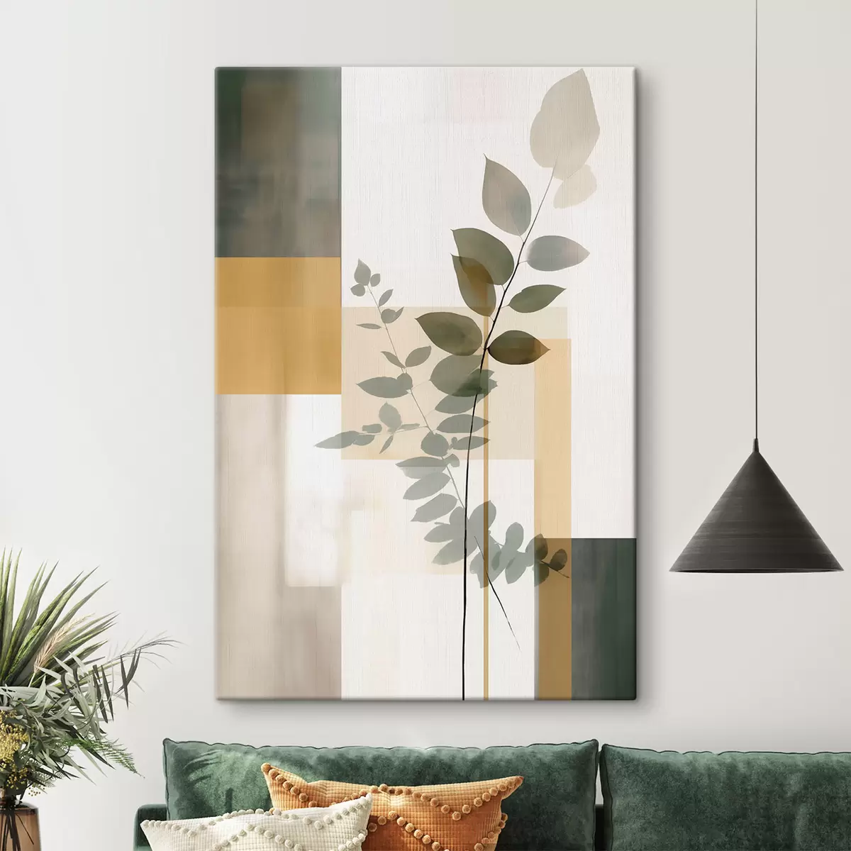Schilderijen Geometrische abstractie met takken en bladeren s48171