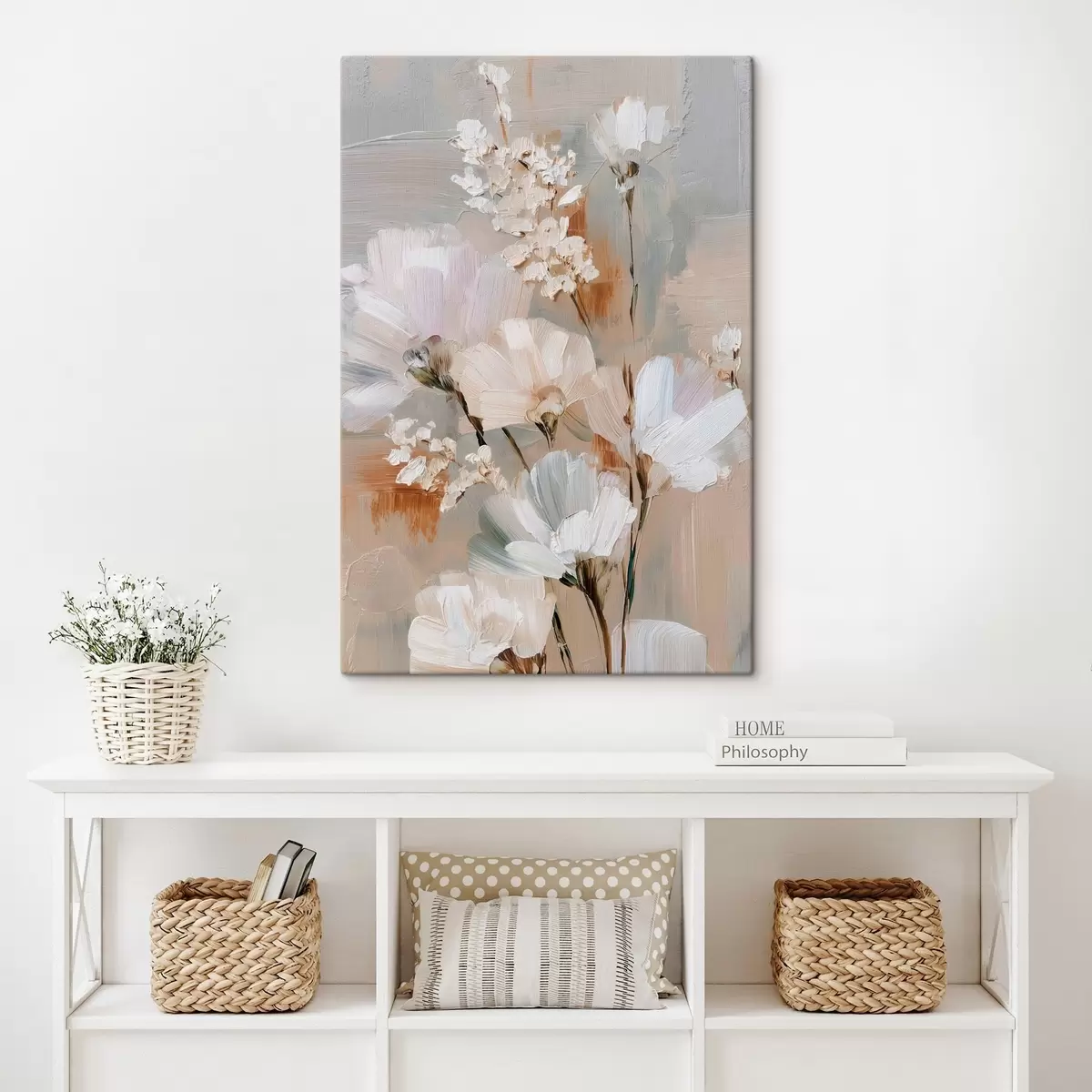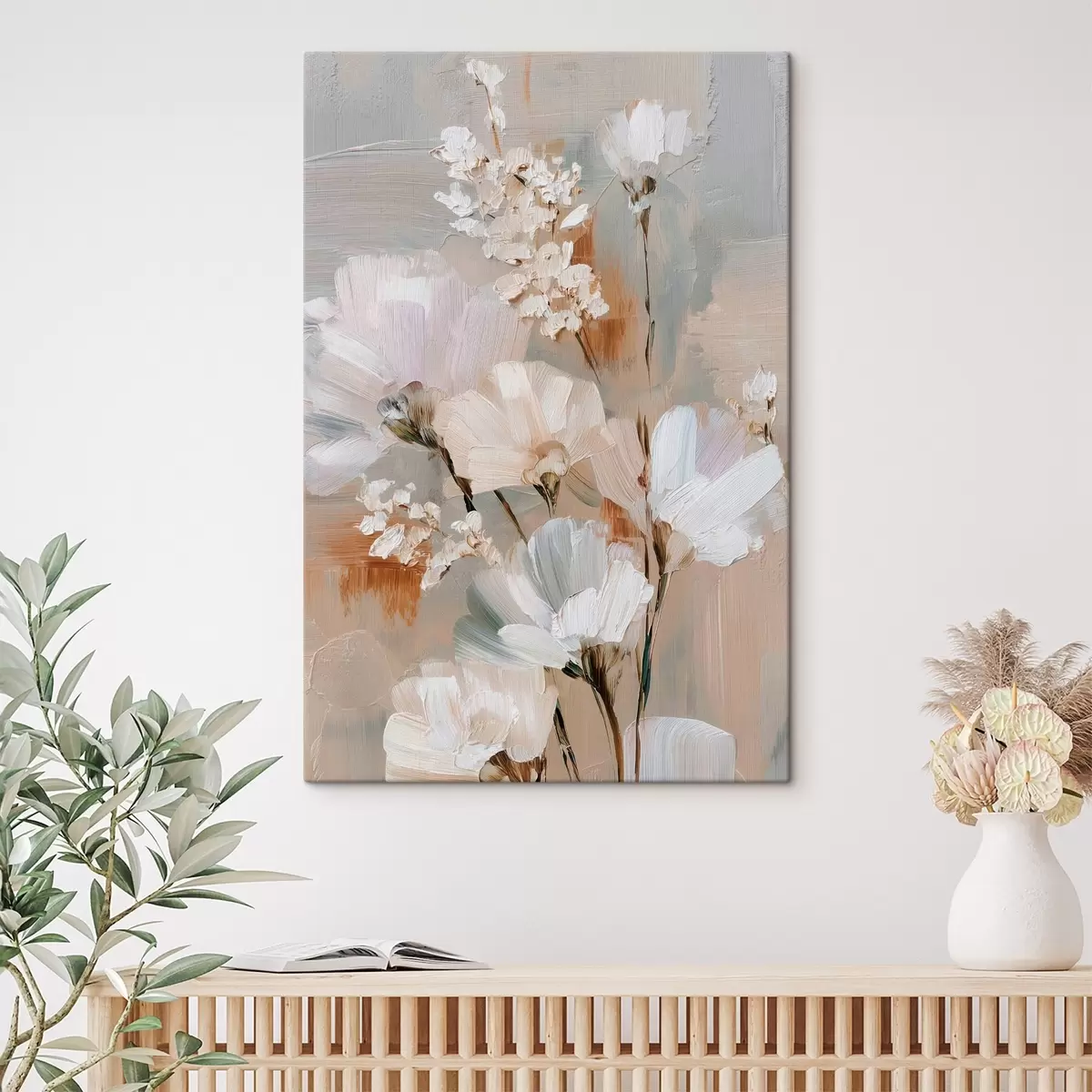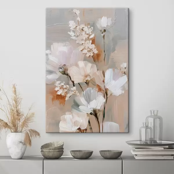 Schilderijen Bloemstuk in pasteltinten in de stijl van een olieverfschilderij s48194