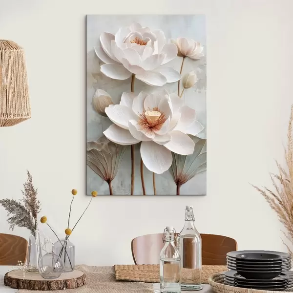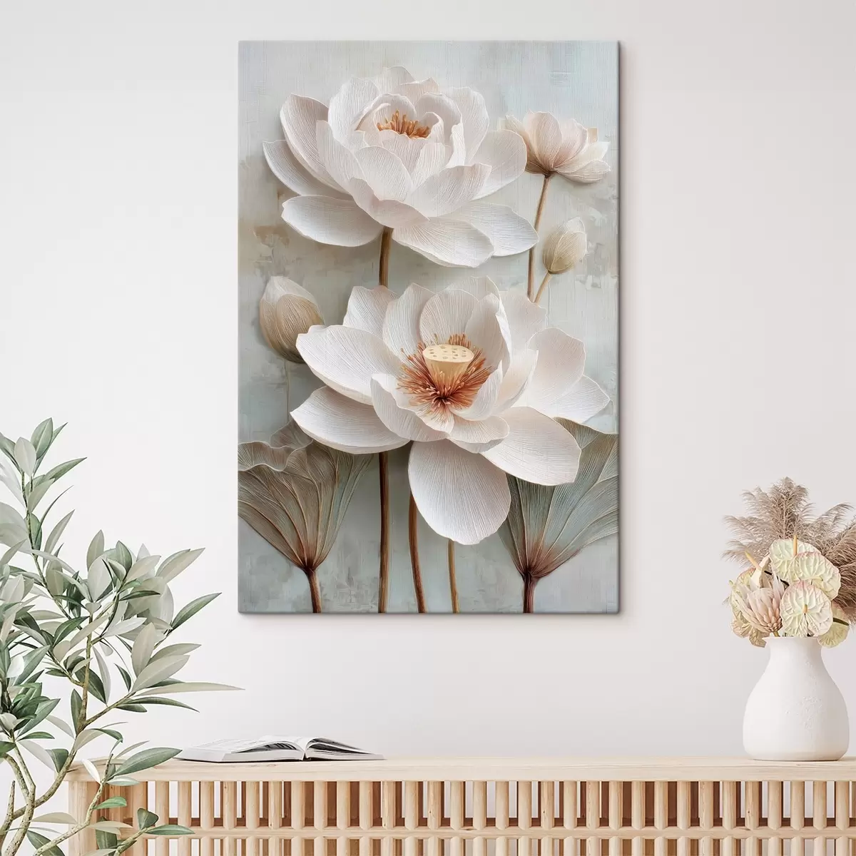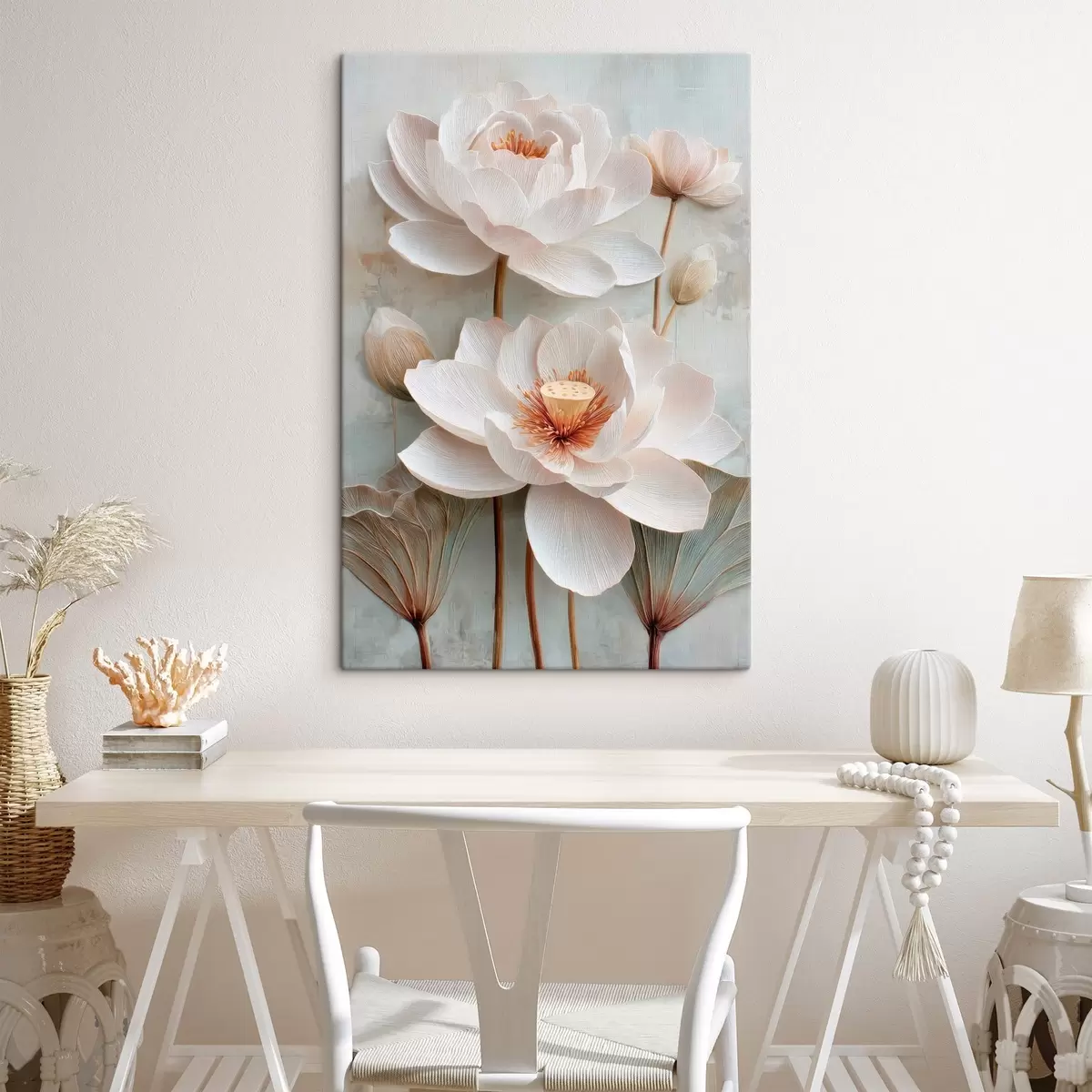 Schilderij Lotusbloemen in lichte pasteltinten in olieverfstijl Art. s48213