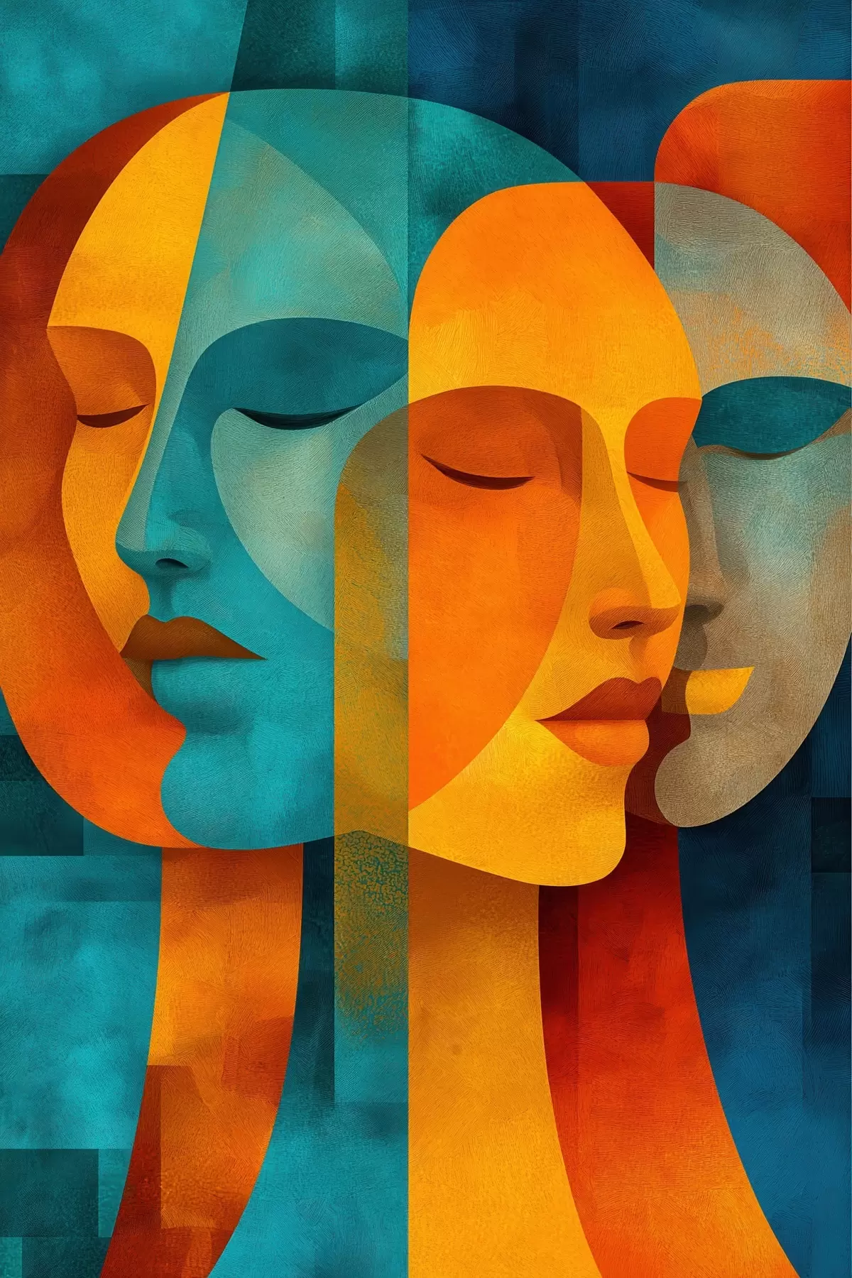 Schilderij Geometrische vrouwelijke profielen Art. s48257