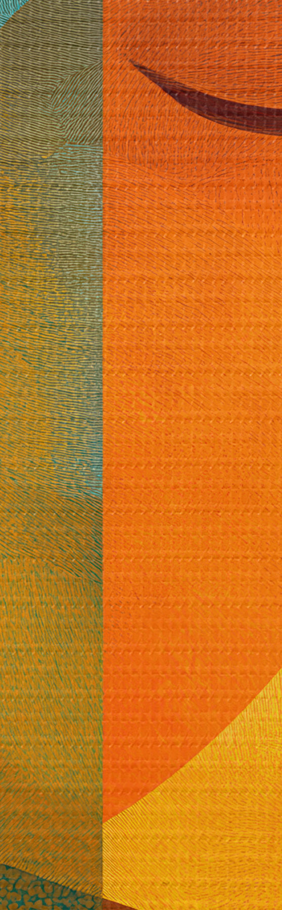 De fijne weving van draden op dit doek lijkt op het oppervlak van professionele schildersdoeken.