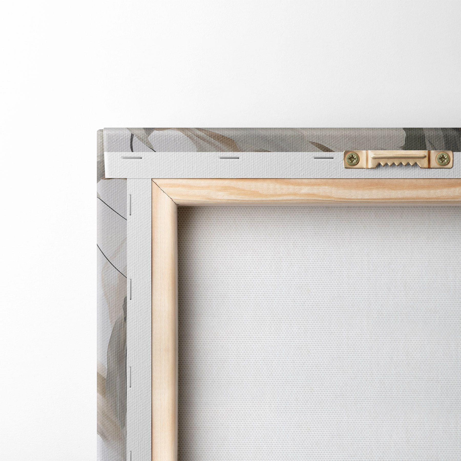 Om het doek op te spannen op spielatten zonder de afbeelding te beschadigen, gebruiken we gespiegeld beeld.