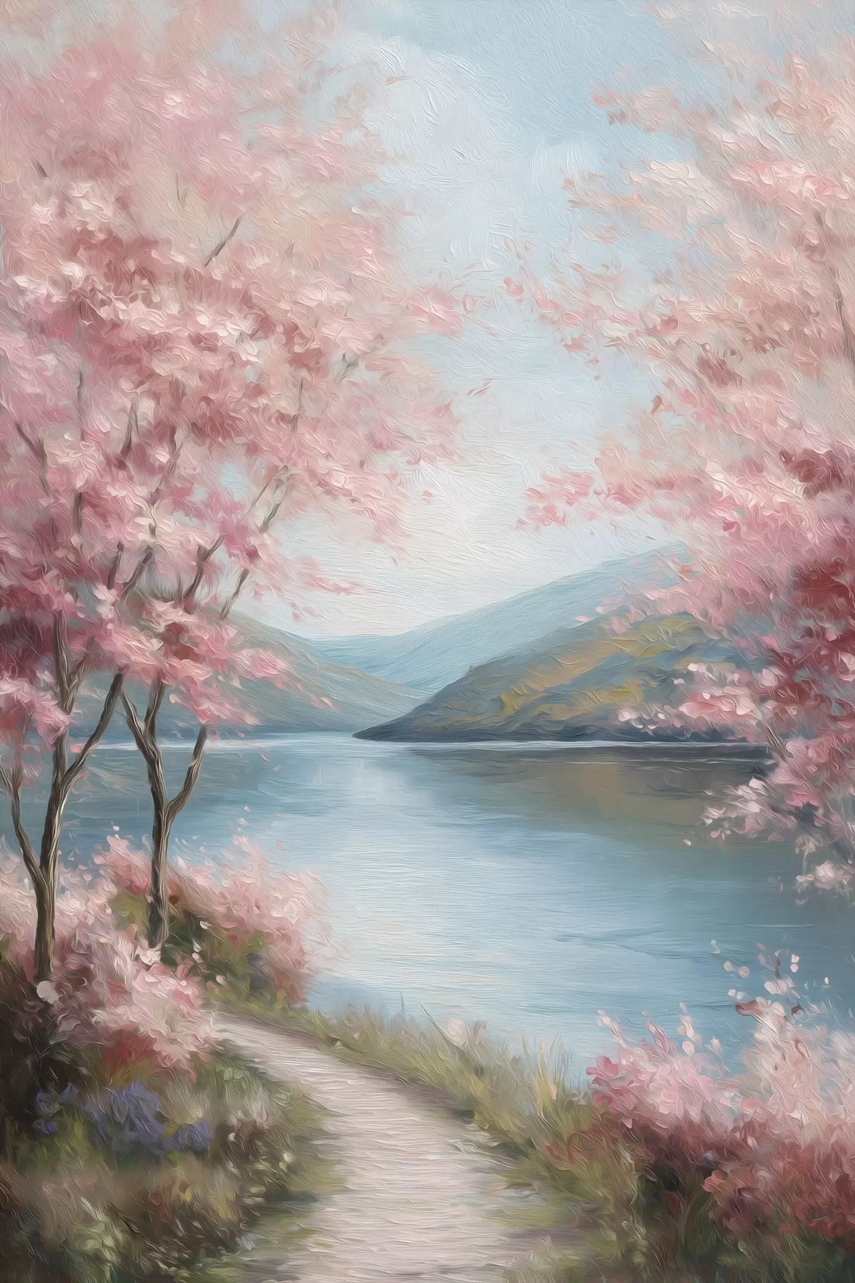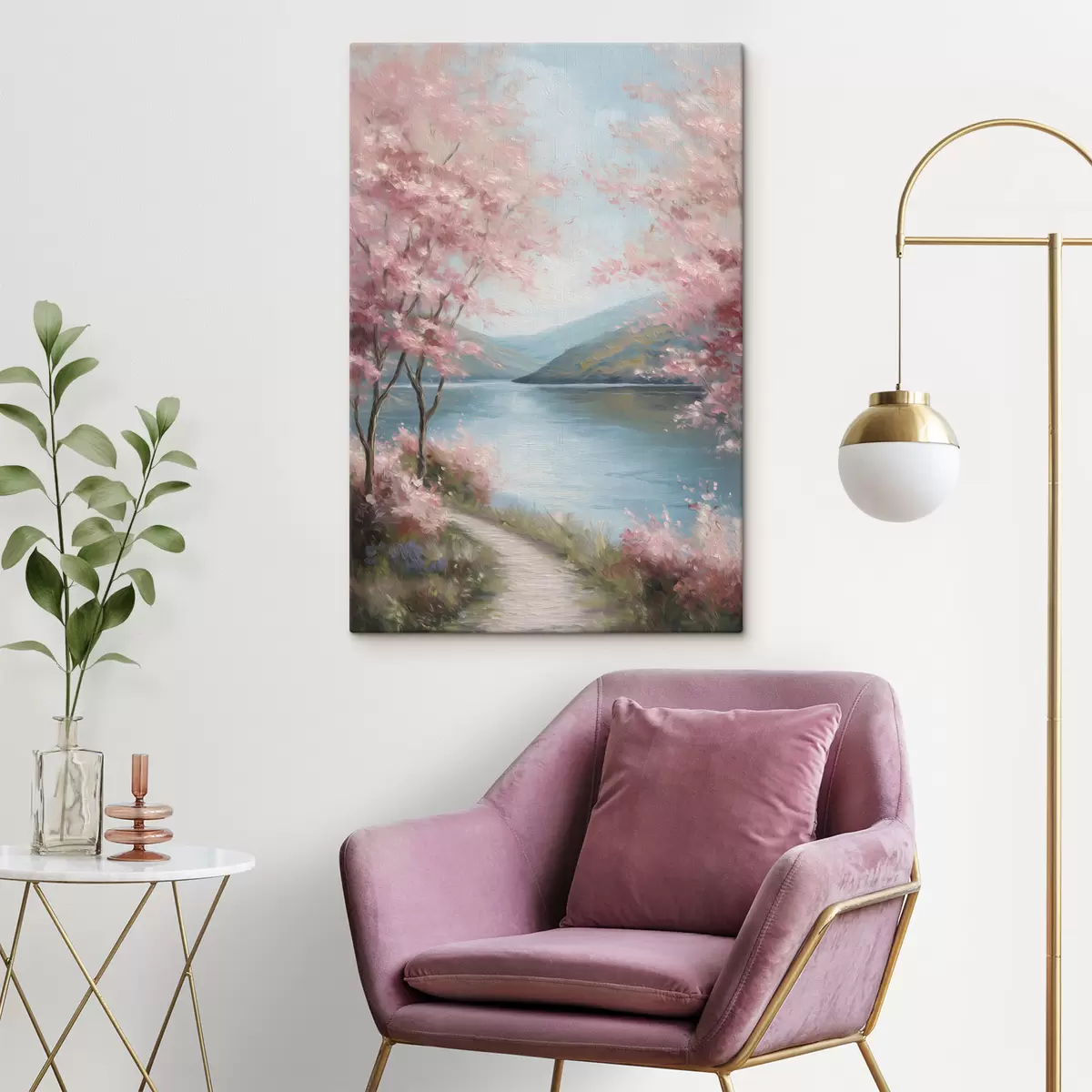 Schilderijen landschap met roze bomen in olieverfstijl s48290