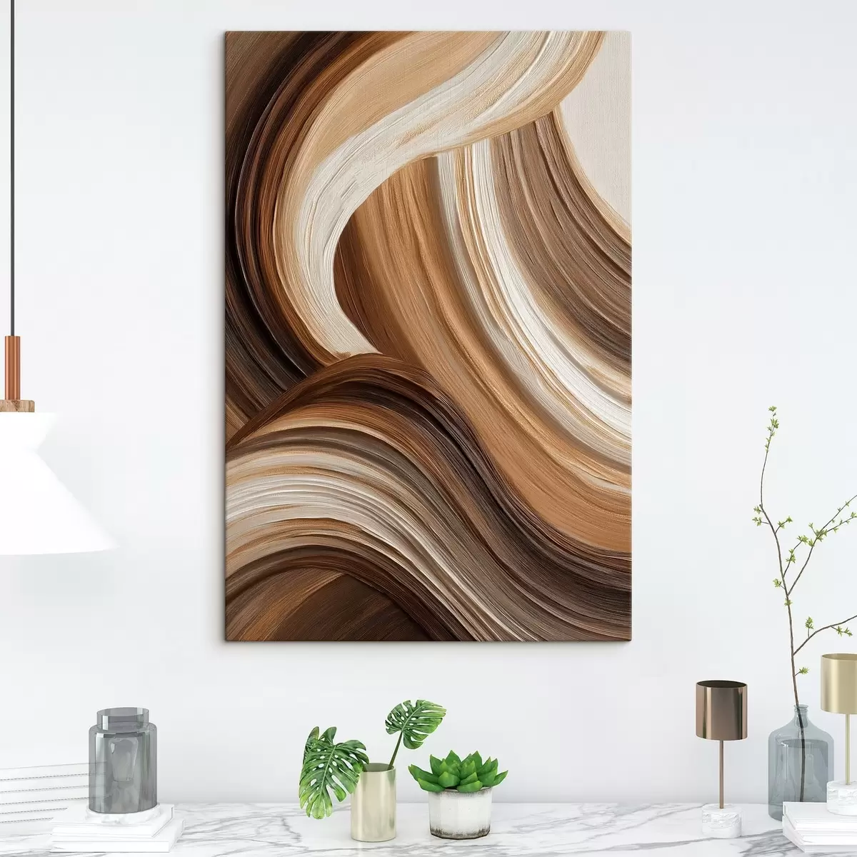 Je kunt het schilderij ophangen aan schroeven. Hiervoor leveren we bevestigingen bij onze foto's, zodat je de foto gemakkelijk kunt ophangen.