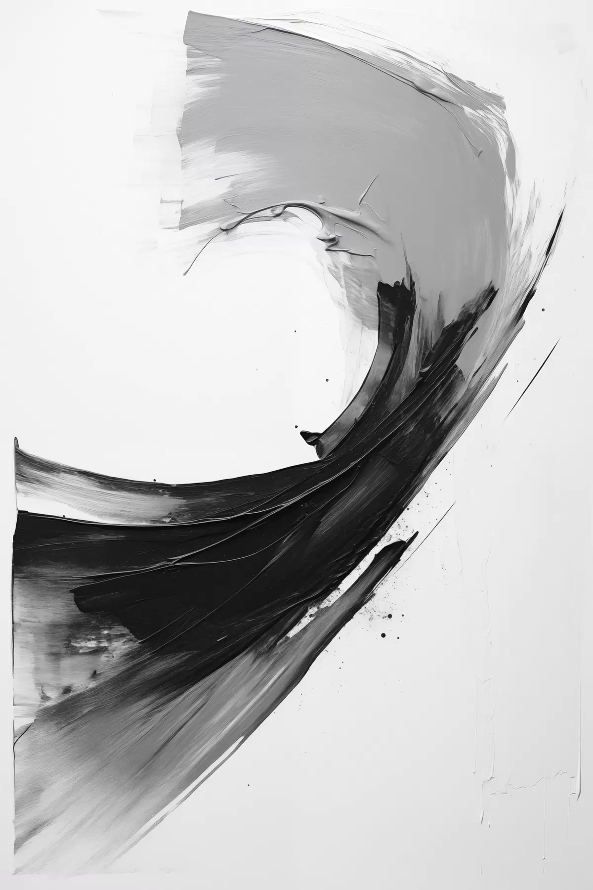 Schilderij Abstracte zwarte penseelstreek op een witte achtergrond Art. s48326