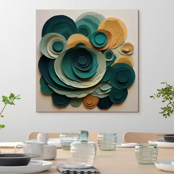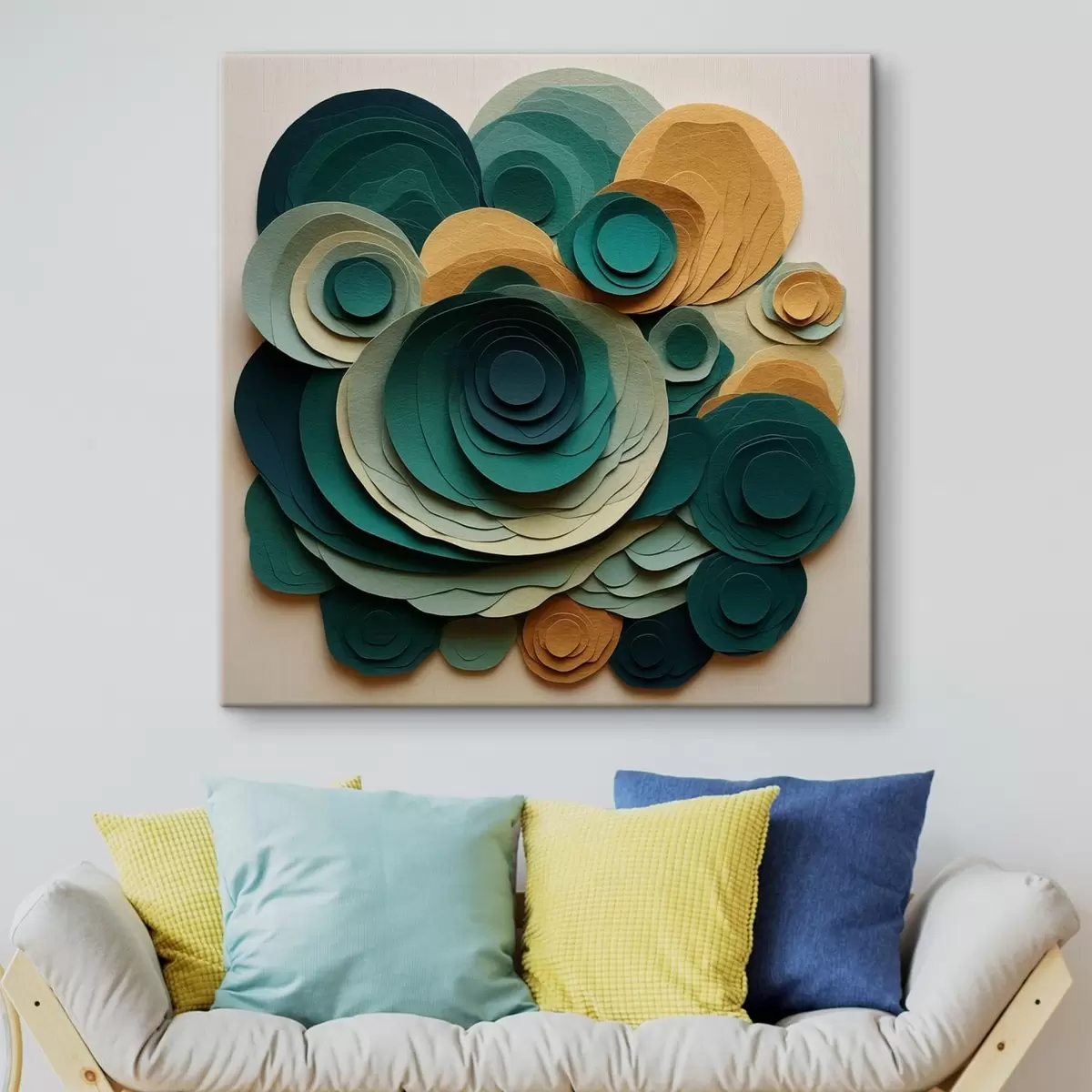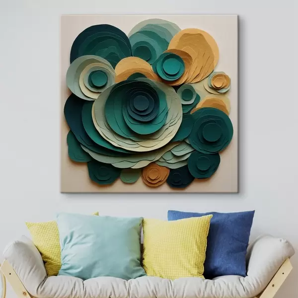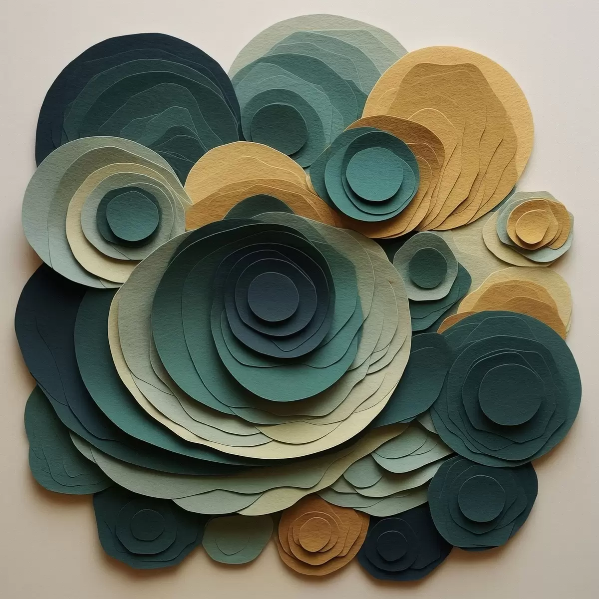 Schilderij Gelaagde papieren cirkels in groene en beige tinten Art. s48332