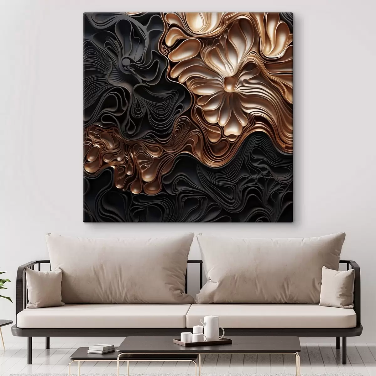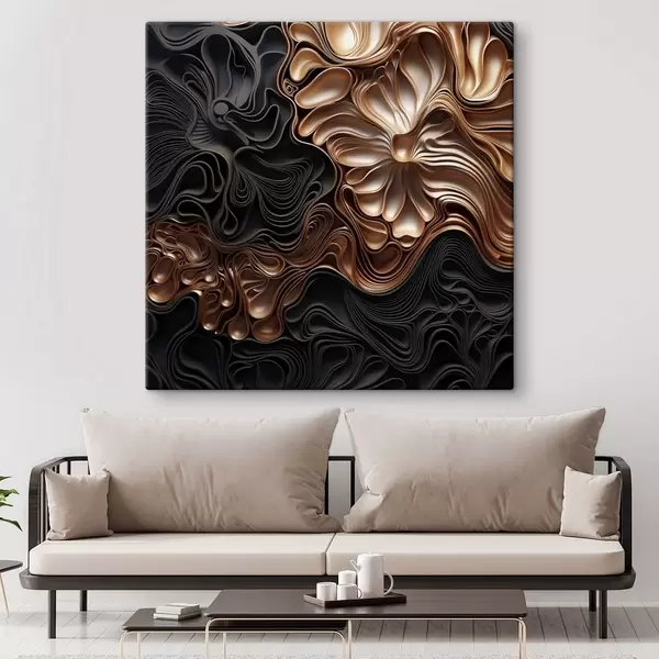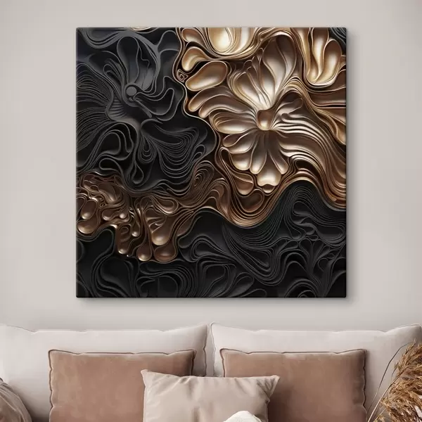 Schilderij Abstracte, vloeiende, organische donkere vormen die een moderne kunst met textuur vormen Art. s48383
