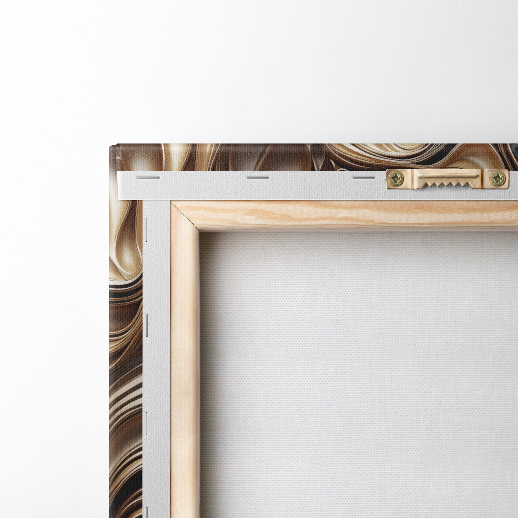 Om het doek op te spannen op spielatten zonder de afbeelding te beschadigen, gebruiken we gespiegeld beeld.