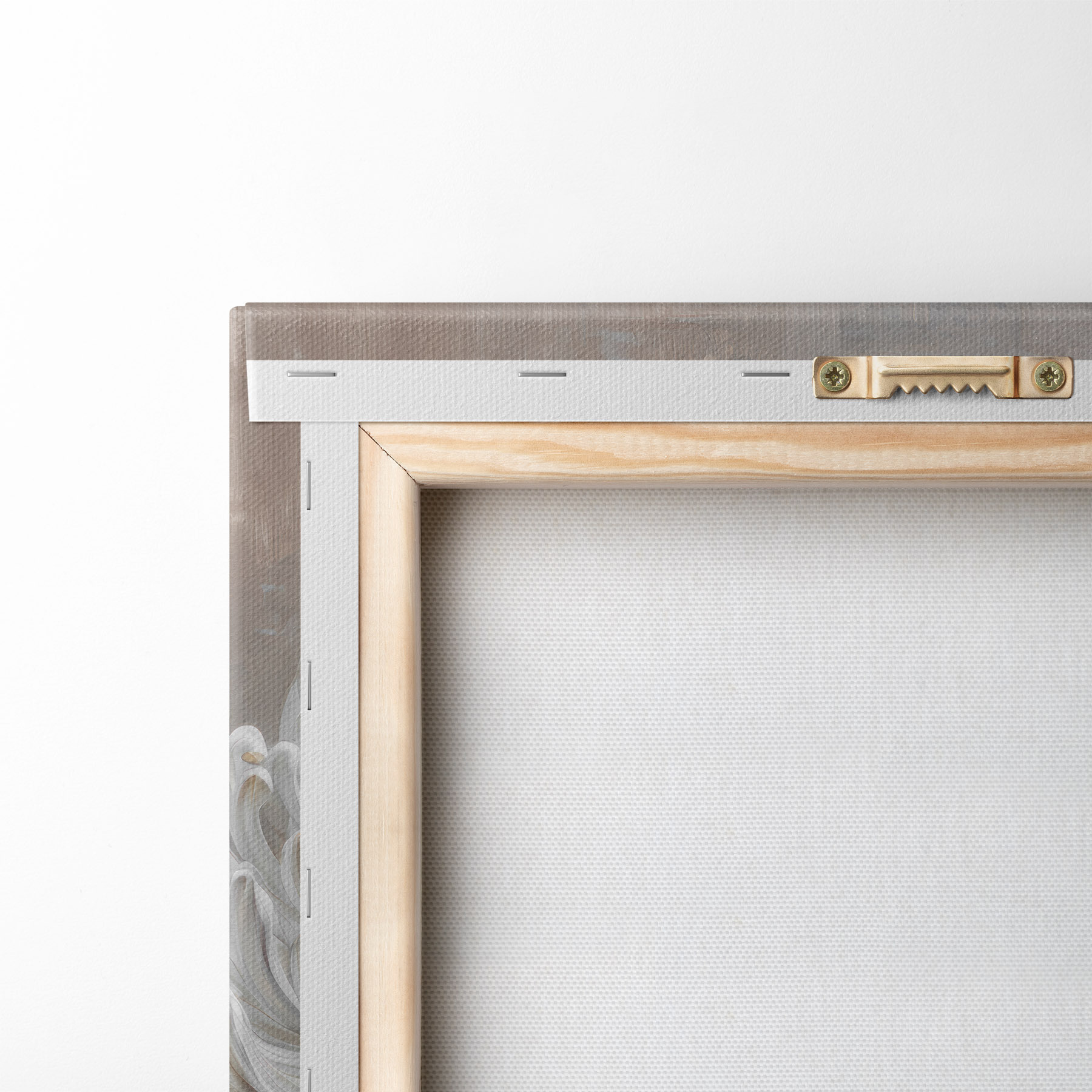 Om het doek op te spannen op spielatten zonder de afbeelding te beschadigen, gebruiken we gespiegeld beeld.