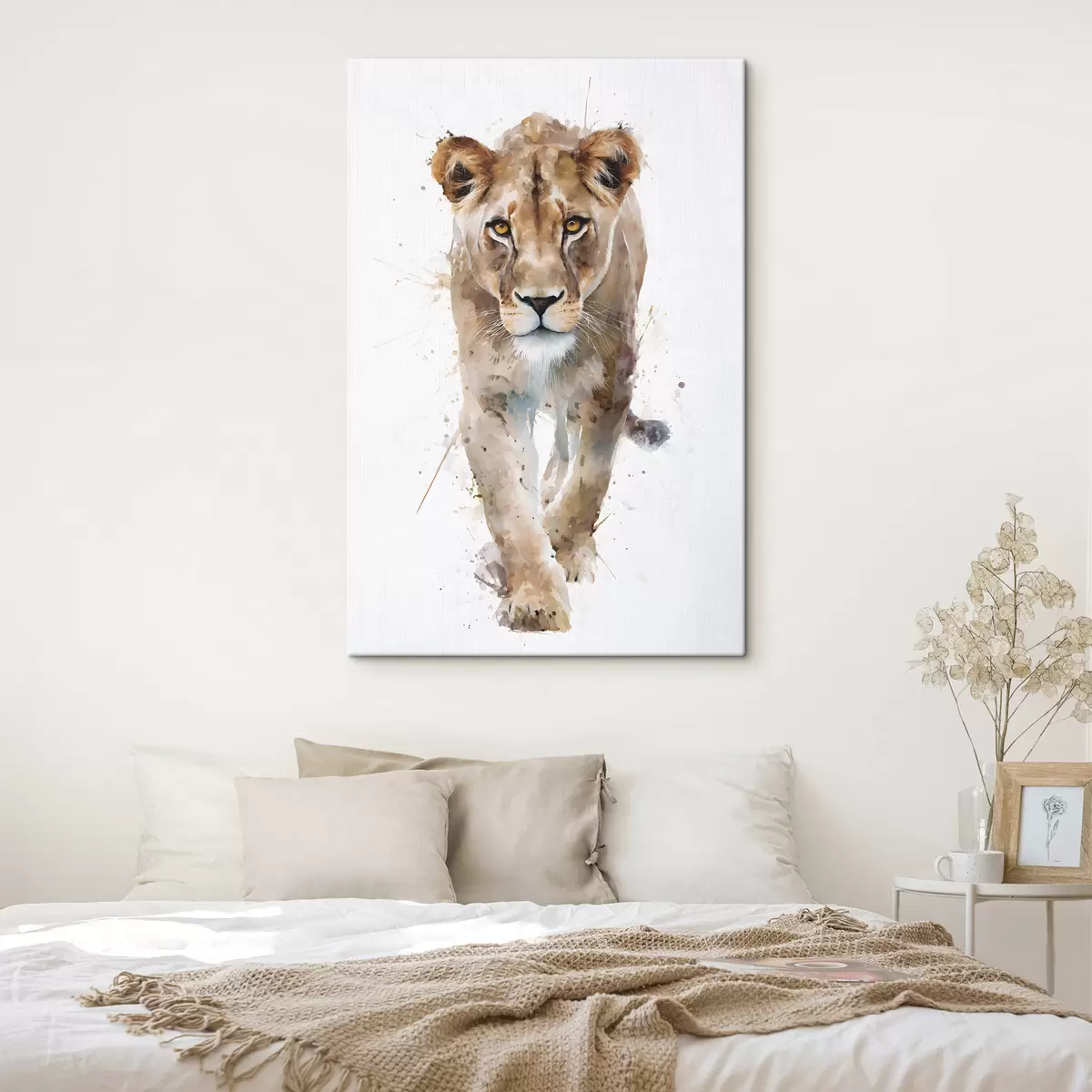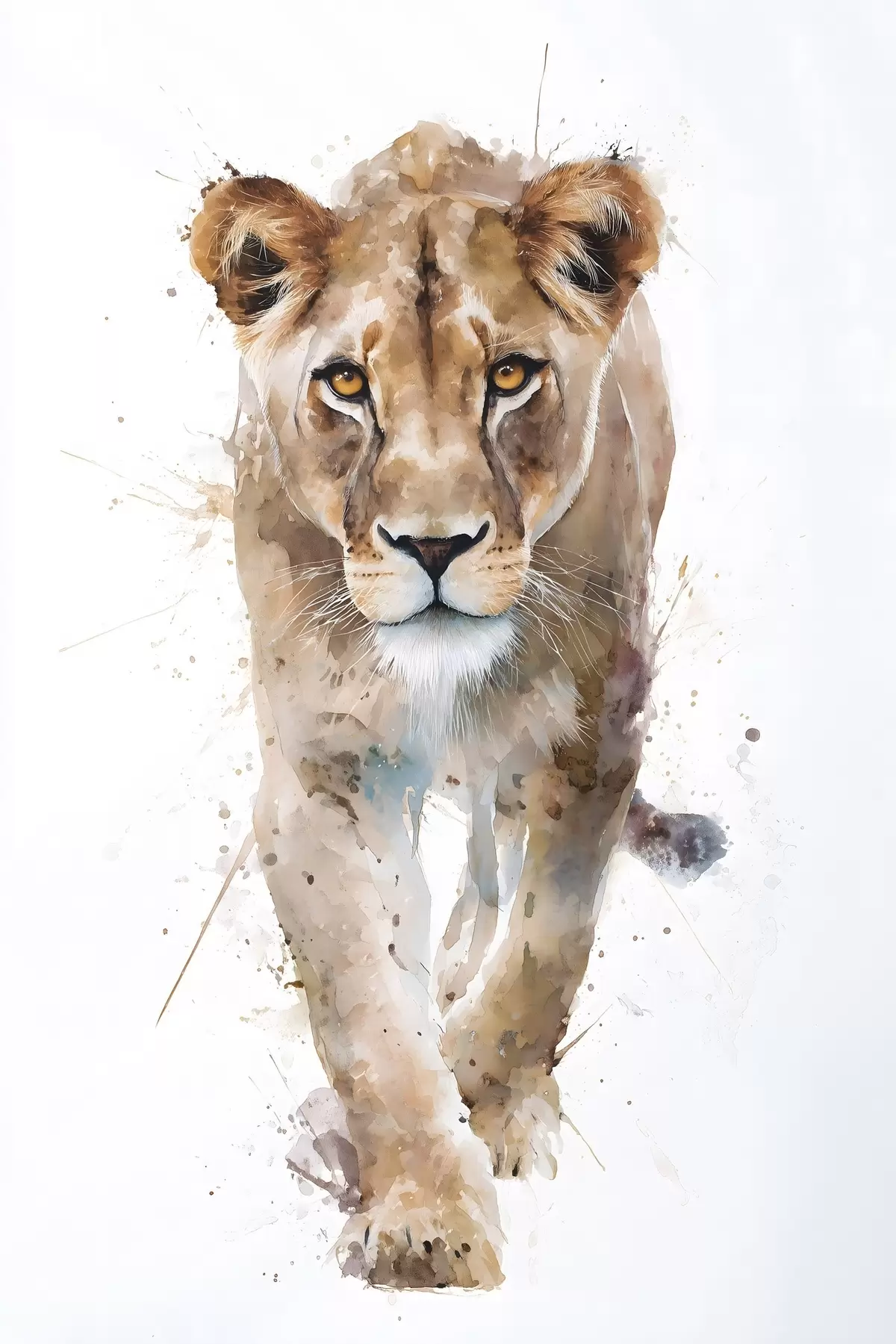 Schilderijen een leeuwin in aquarelstijl s48526
