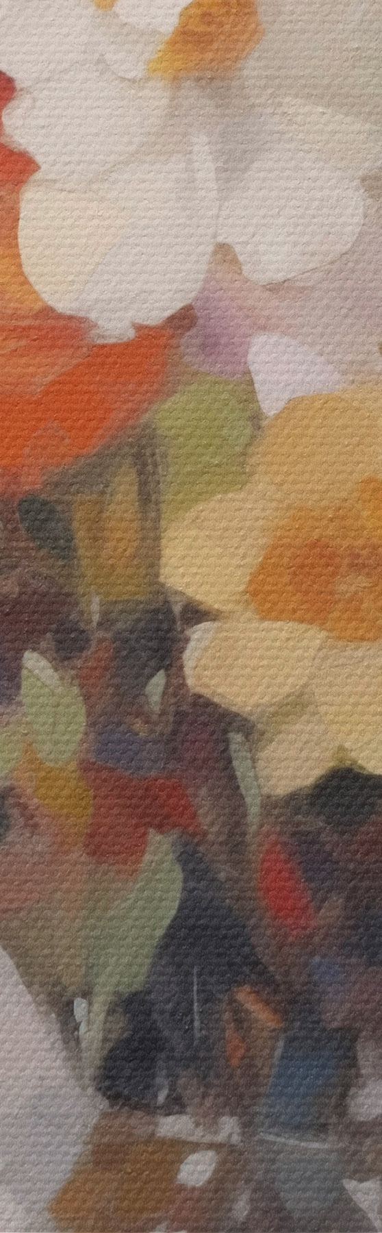 Het schilderij kan direct na ontvangst worden opgehangen. Het schilderij wordt opgespannen op een 2 cm breed houten spieraam.