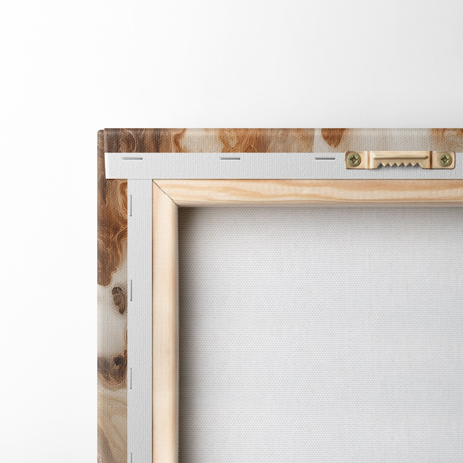 Je kunt het schilderij ophangen aan schroeven. Hiervoor leveren we bevestigingen bij onze foto's, zodat je de foto gemakkelijk kunt ophangen.
