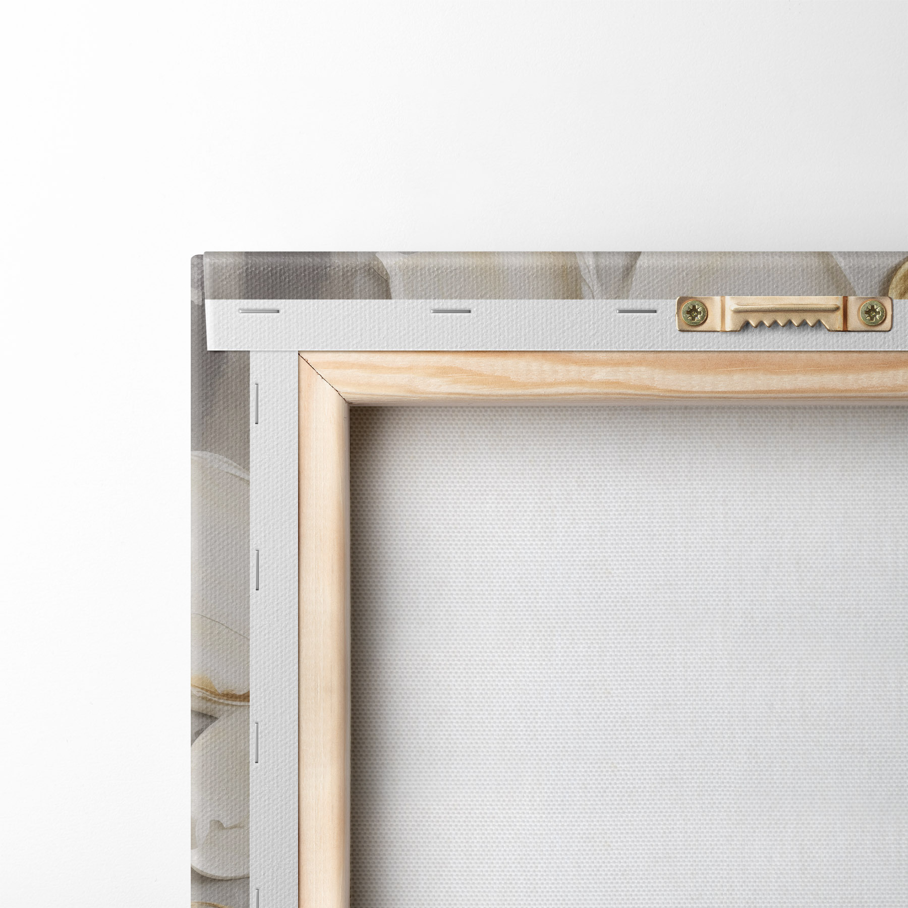 Om het doek op te spannen op spielatten zonder de afbeelding te beschadigen, gebruiken we gespiegeld beeld.