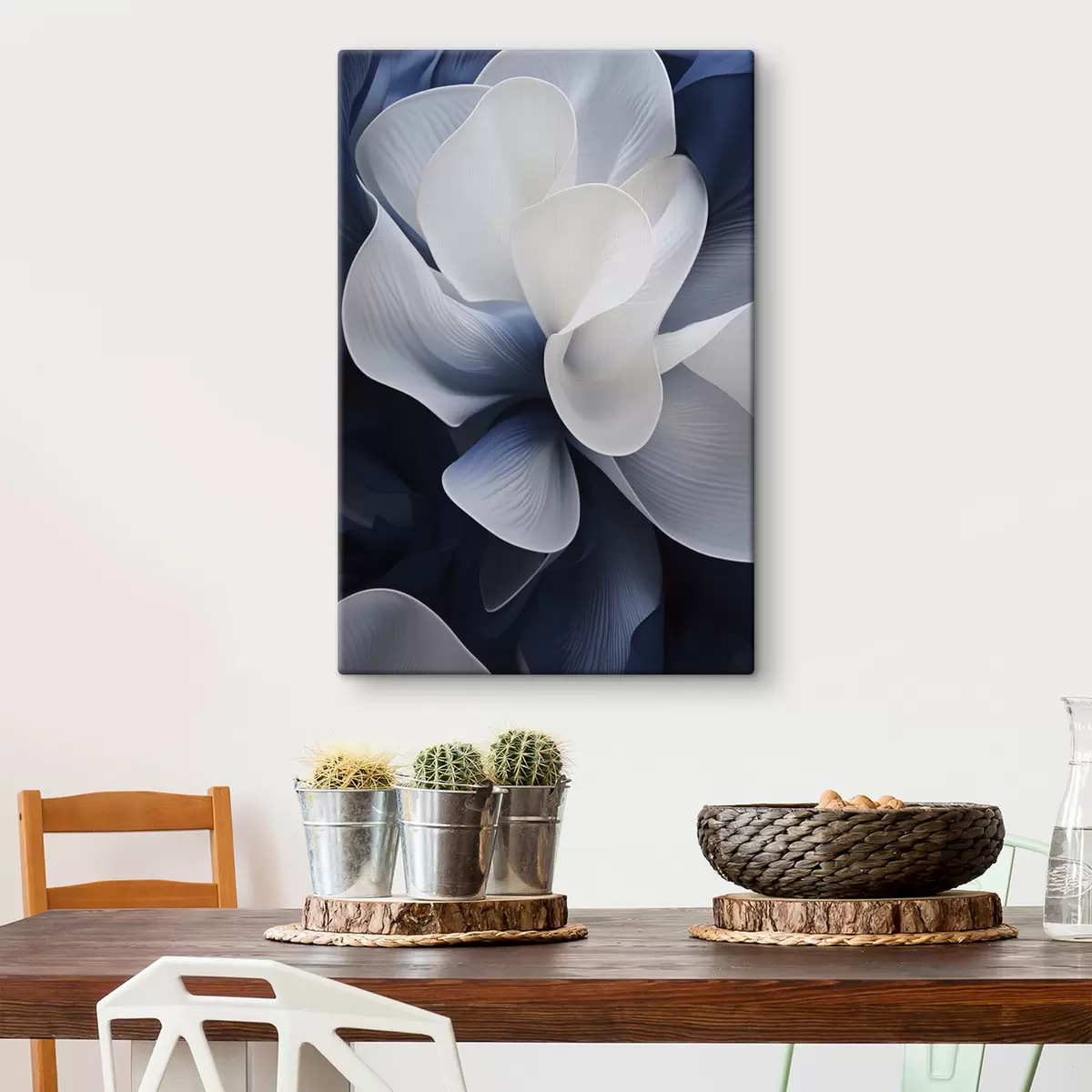 Er zijn drie soorten materiaal te bestellen: Economic Canvas - een dicht en duurzaam materiaal voor digitaal printen, identiek aan schildersdoek, waterdicht oppervlak, realistische weergave van details, materiaal met gemiddelde korrel. Premium Canvas - de textuur lijkt op die van schildersdoek (verweven kleine draden). Zachte, gedetailleerde reproductie van de afbeelding op een mat oppervlak. Eco-Premium - hoogwaardige 100% katoenen stof. Dankzij de natuurlijke katoenvezels is het materiaal duurzaam en slijtvast. Uitstekende kleurweergave en detail.