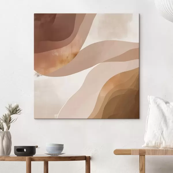 Schilderij Abstracte golvende vormen in een koffiebruin kleurenpalet Art. s48836