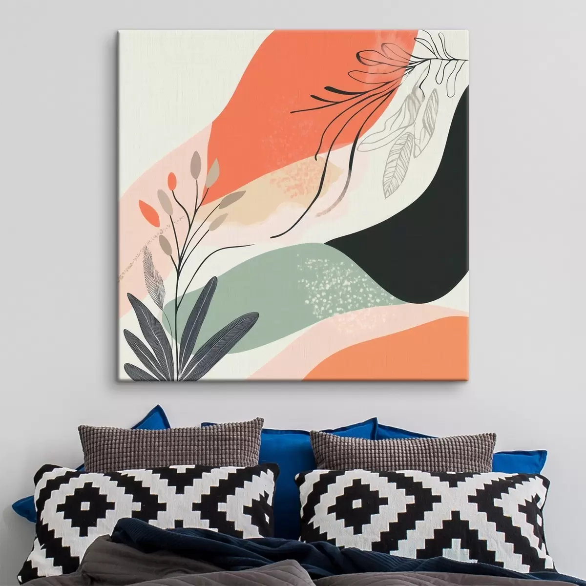 Schilderijen Gestileerde plantmotieven tegen een achtergrond van aquarelvlekken s48839