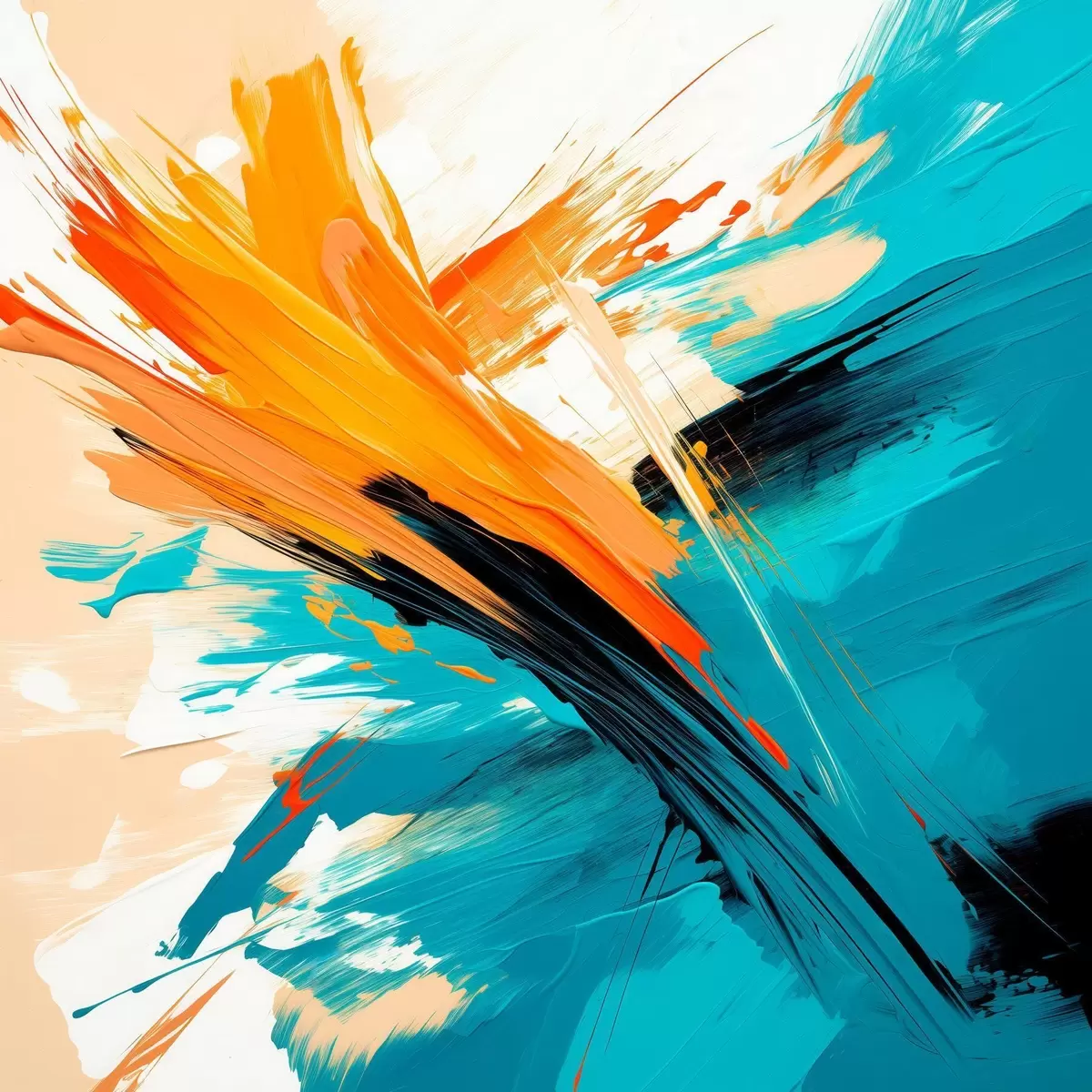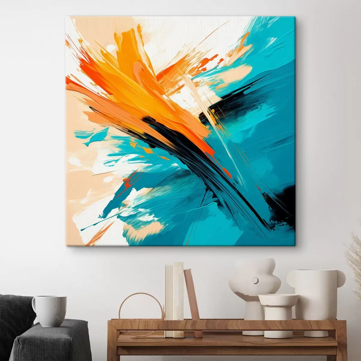 Schilderij Een levendige voorstelling in een turquoise-terracottakleurig palet, uitgevoerd in een eigentijdse schilderstijl Art. s48855