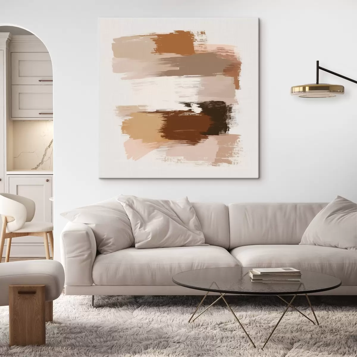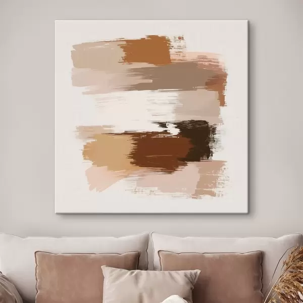 Schilderij Minimalistisch tafereel met horizontale penseelstreken in koffie- en terracottatinten Art. s48858