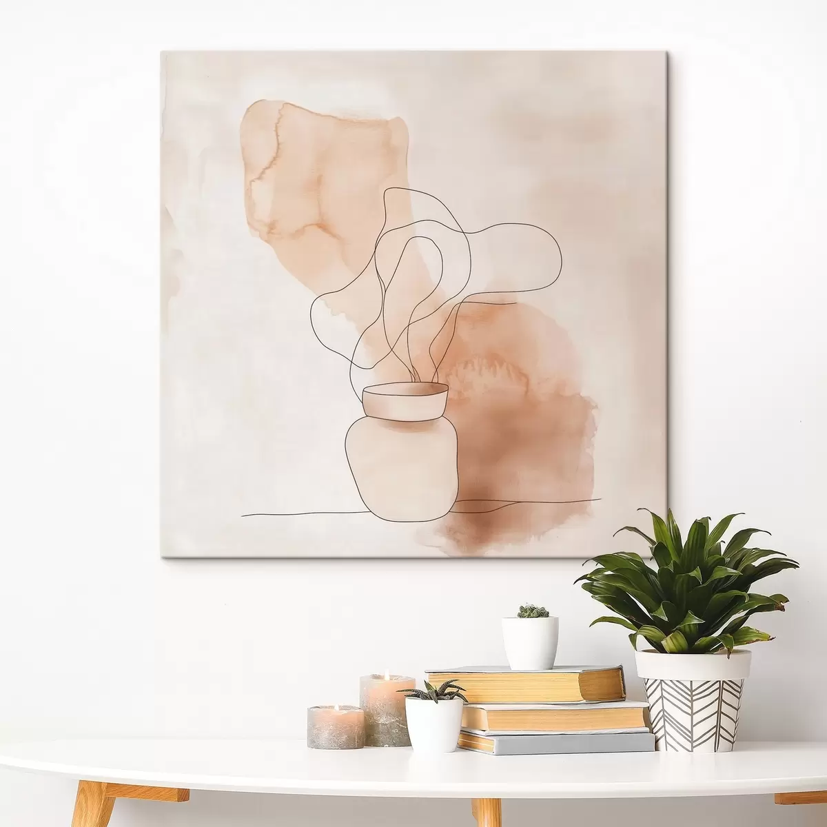 Schilderij Een sobere compositie met een vaas en grafische lijnen in minimalistische stijl Art. s48869